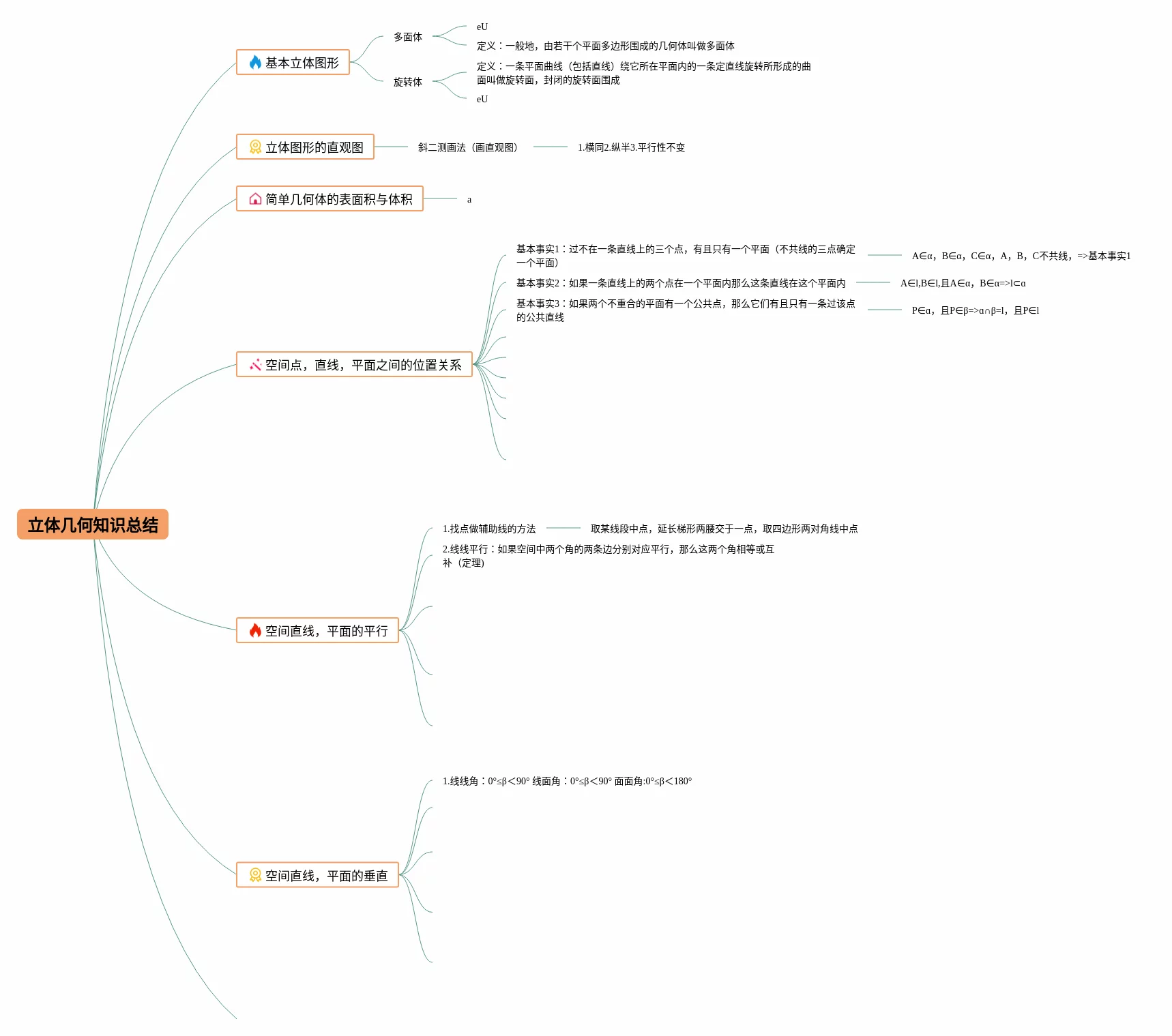 22张立体几何思维导图高中汇总,立体几何思维导图高中,内容涵盖点、线、面、空间几何体等2个要点,22张可打印,每张思维导图都非常漂亮,每张图片均可打印。