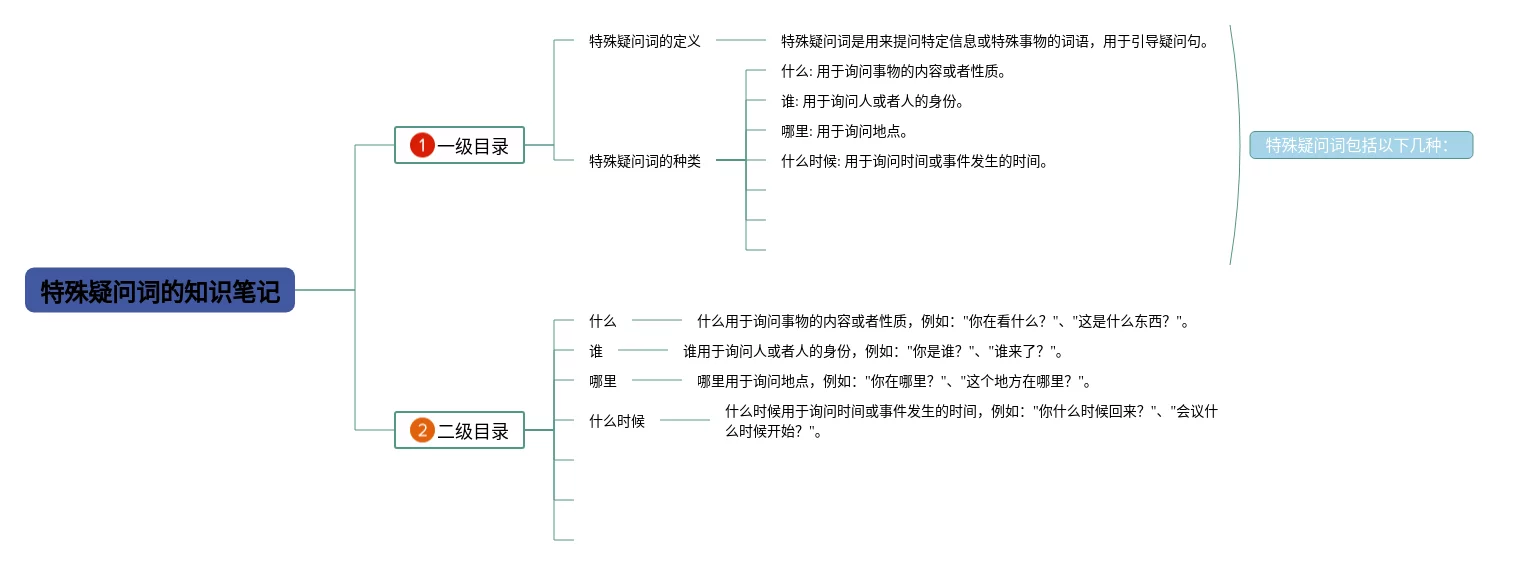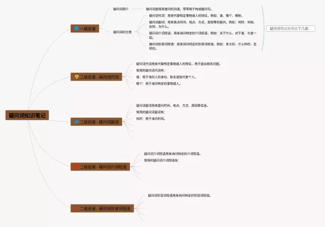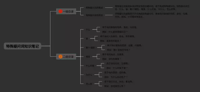 23张特殊疑问词思维导图合集,特殊疑问词思维导图,内容涵盖一级目录、疑问词、使用方法、例句等4个部分,23张附打印高清版,每张思维导图都非常简单,每张图片均附打印高清版。