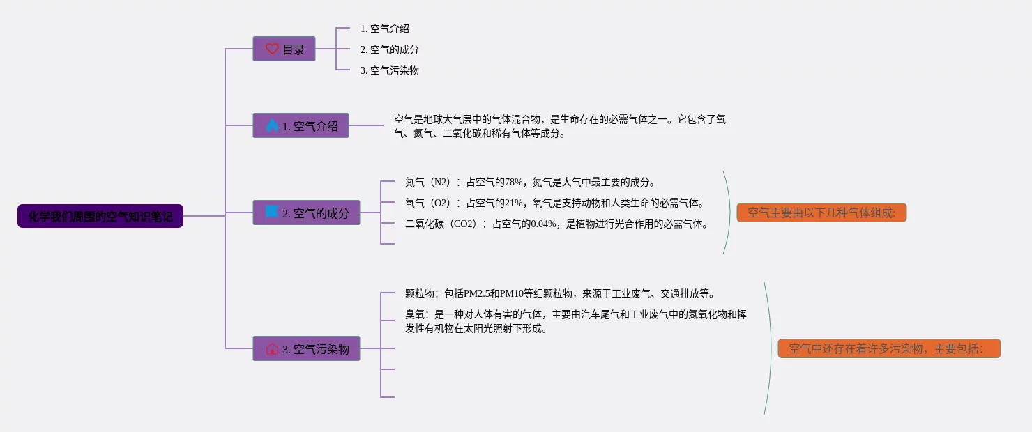 21张我们周围的空气思维导图化学合集,我们周围的空气思维导图化学,内容涵盖目录、空气的组成、空气染物、空气染对人类的影响、空气染的预防与治理等5个部分,21张可打印,每张思维导图都非常漂亮,每张图片均可打印。