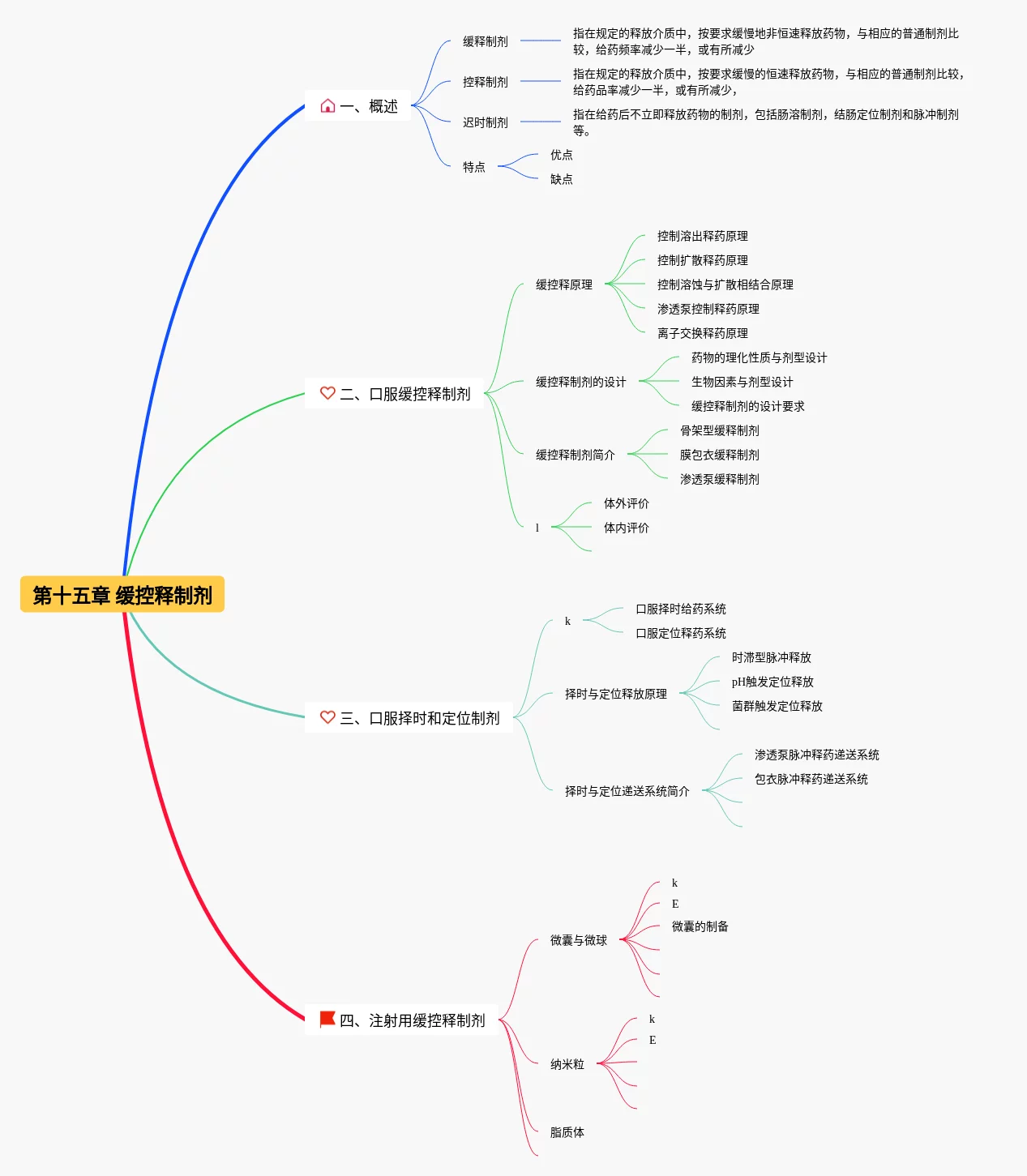 25张红岩第十五章思维导图汇总,红岩第十五章思维导图,内容涵盖概述、口服缓控释制剂、口服择时和定位制剂、注射用缓控释制剂等4个知识点,25张附打印高清版,每张思维导图都非常简单,每张图片均附打印高清版。