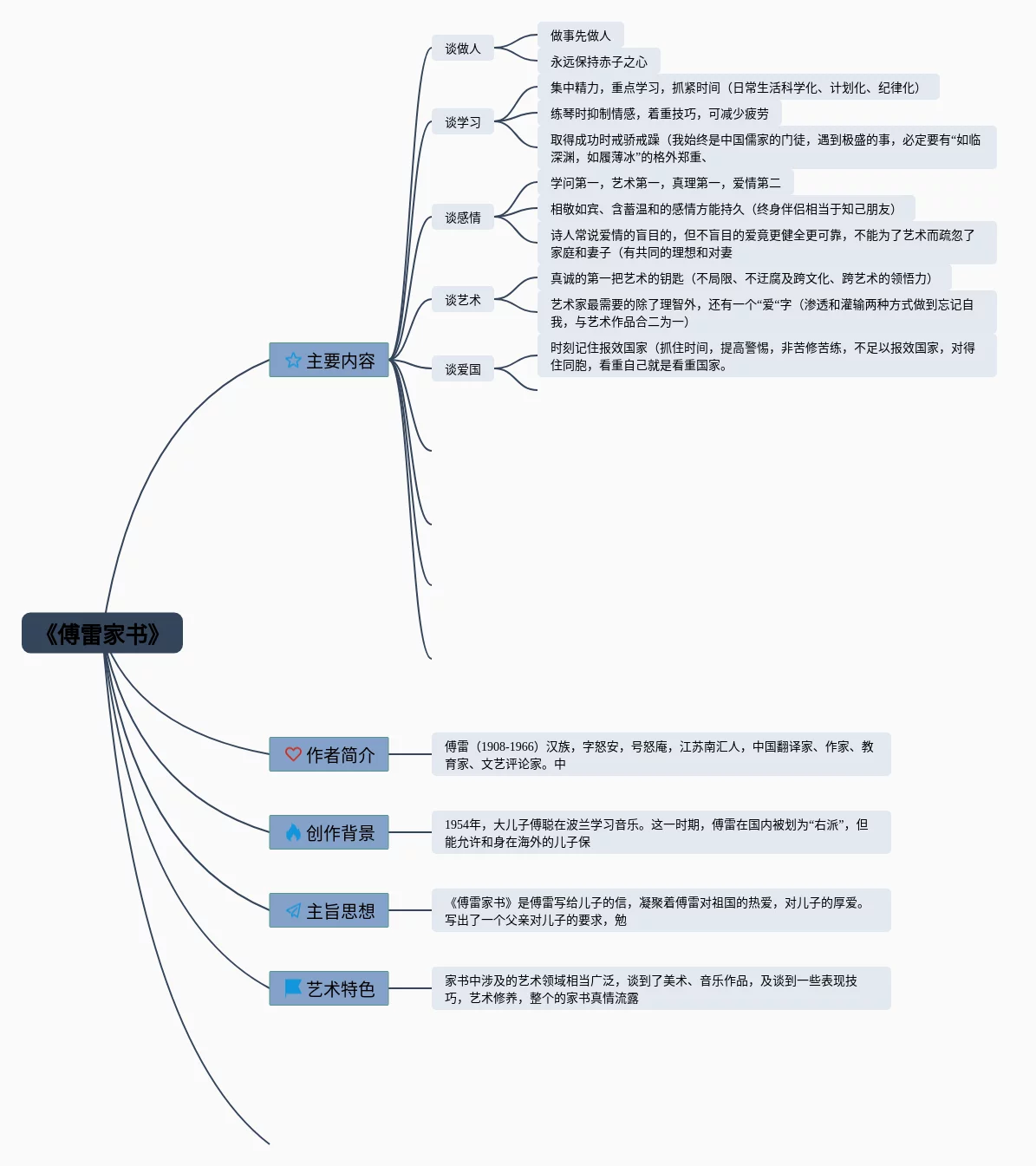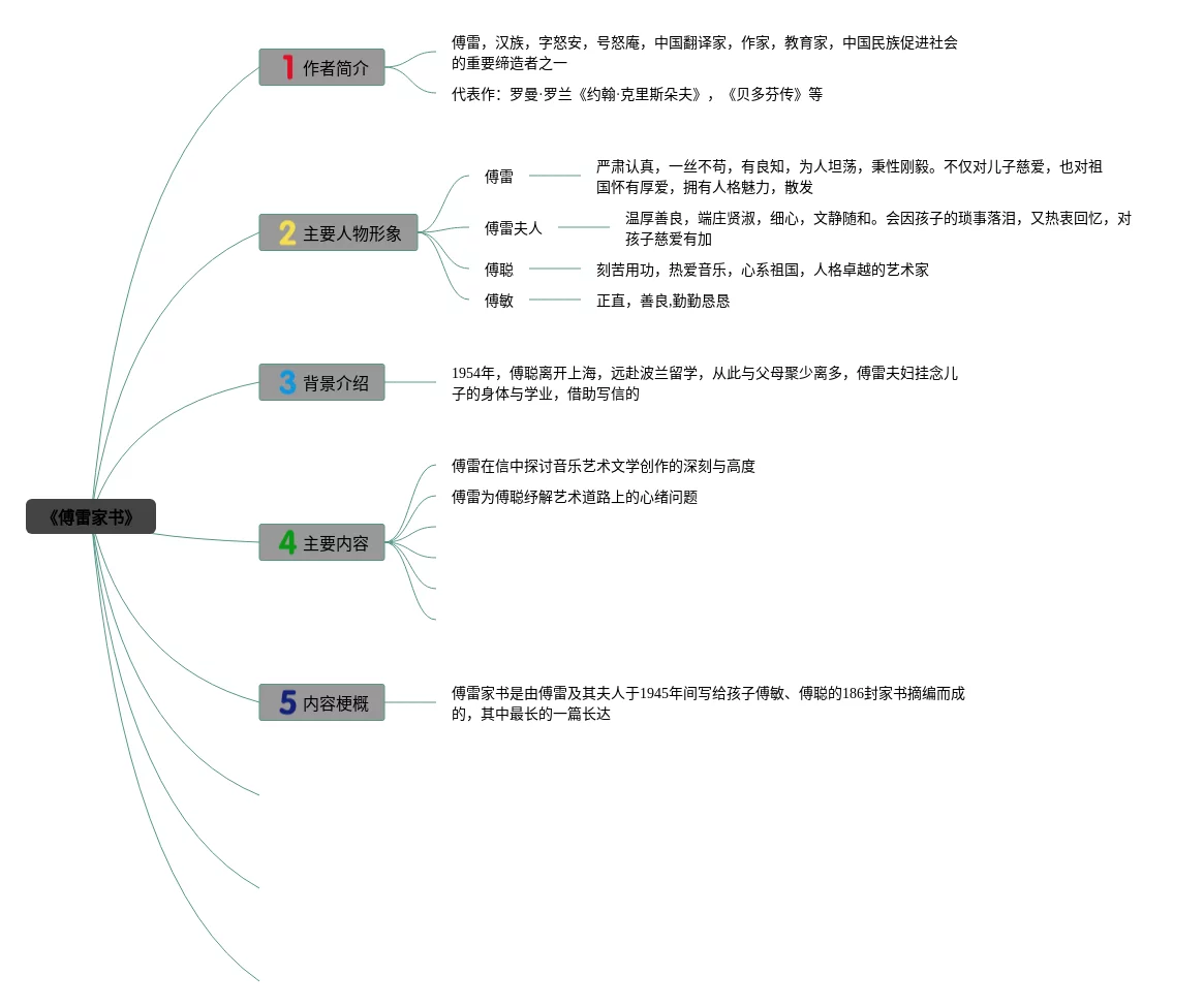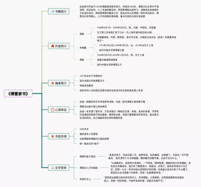 25张思维导图傅雷家书汇总,思维导图傅雷家书,内容涵盖书籍简介、主要内容、主要人物、主题思想、目的等5个方面,25张高清晰可打印,每张思维导图都非常清晰,每张图片均高清晰可打印。