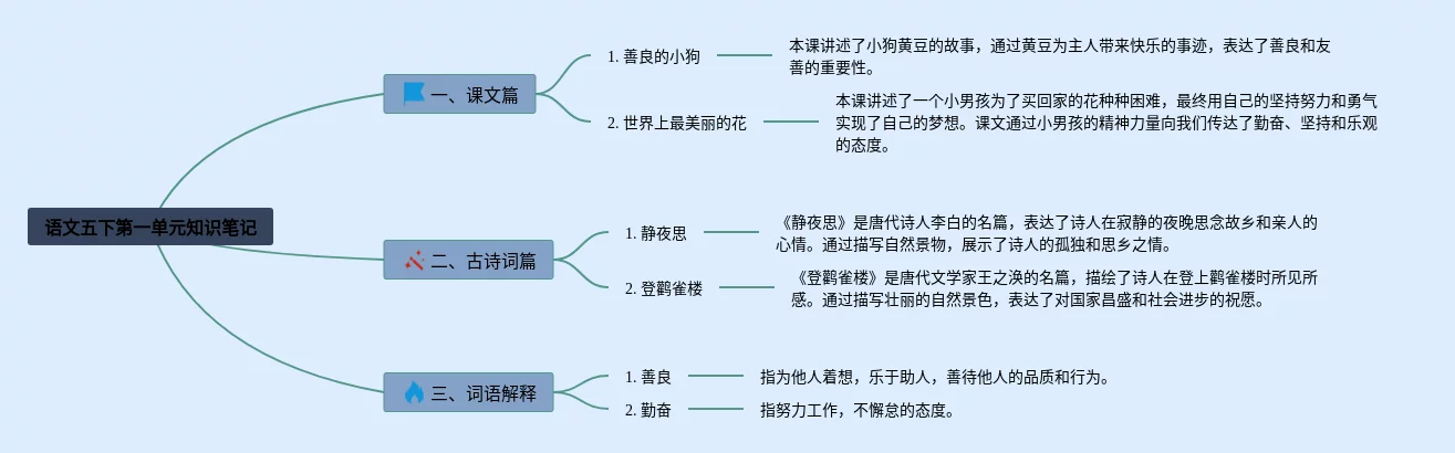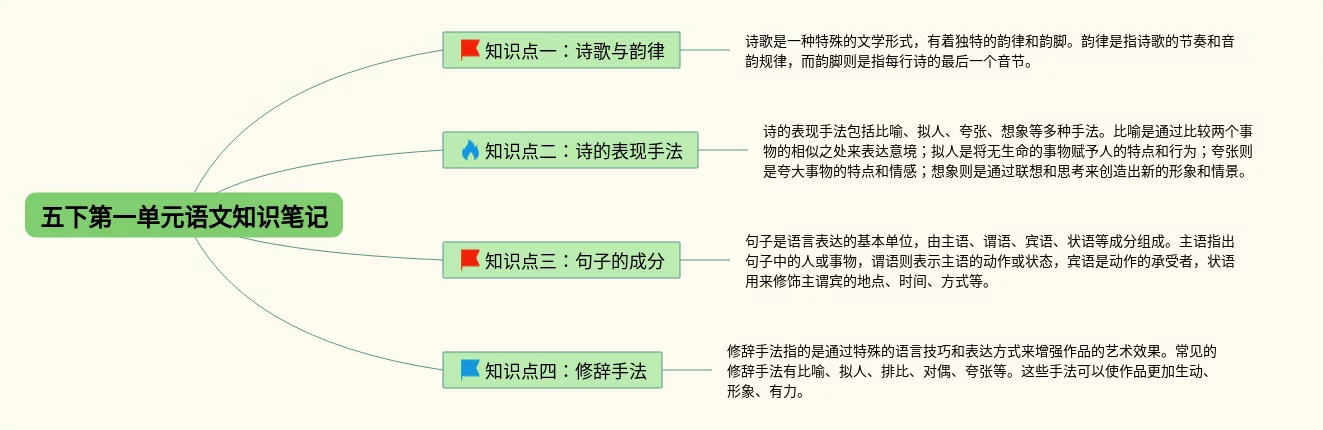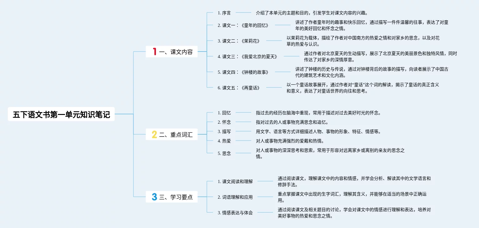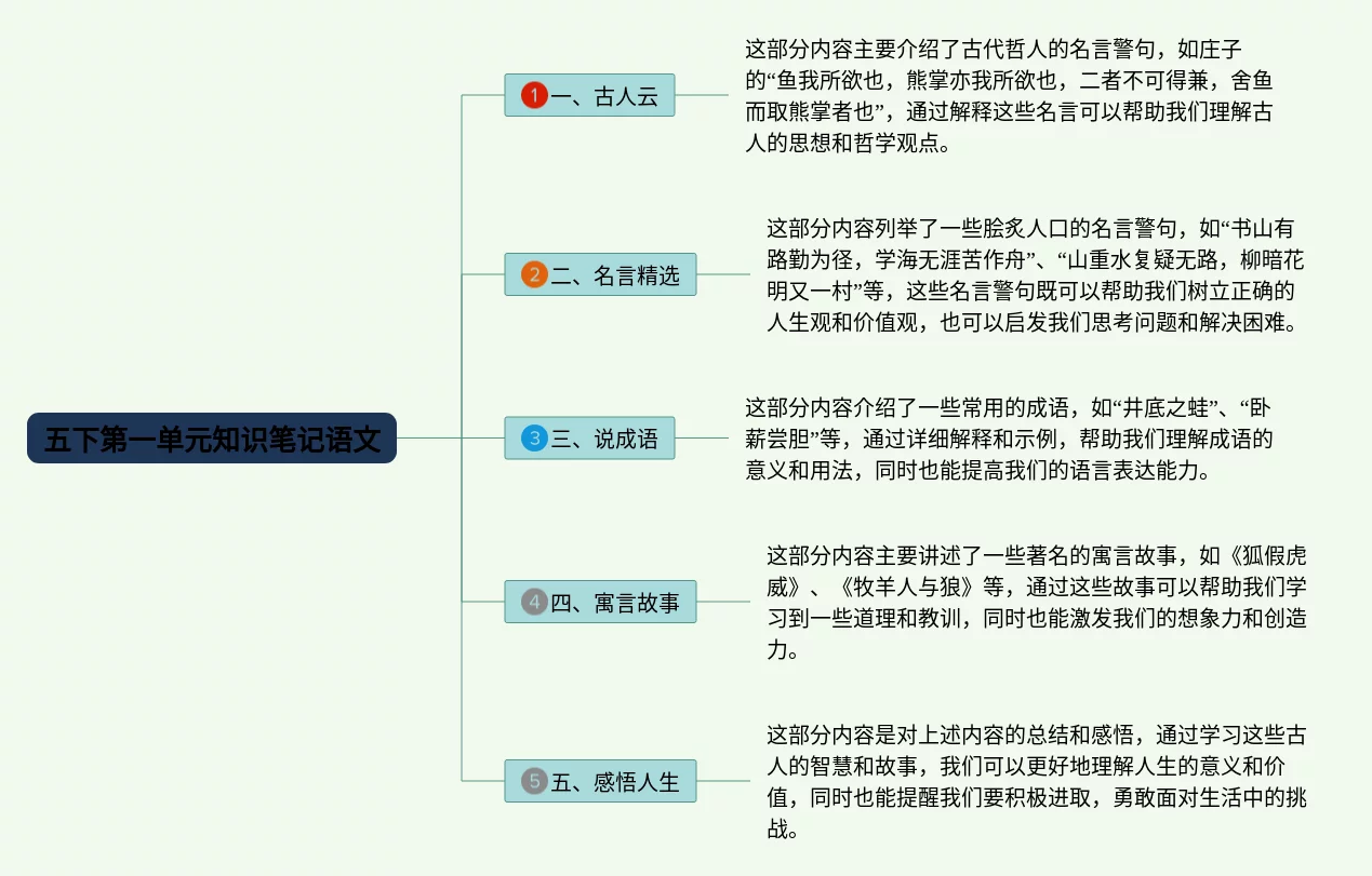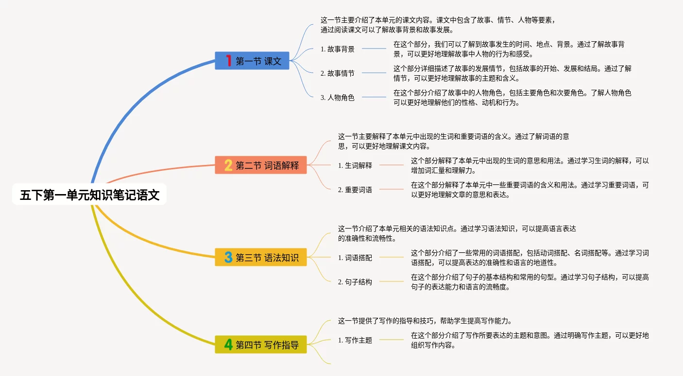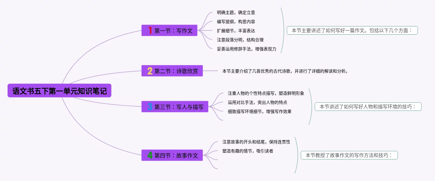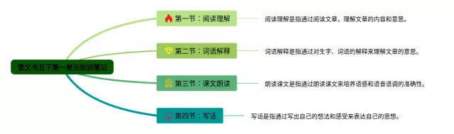20张语文书五下第一单元思维导图汇总,语文书五下第一单元思维导图,内容涵盖第一节 课文、第二节 词语解释、第三节 语法知识、第四节 写作指导等4个知识点,20张高清版,每张思维导图都非常清晰,每张图片均高清版。