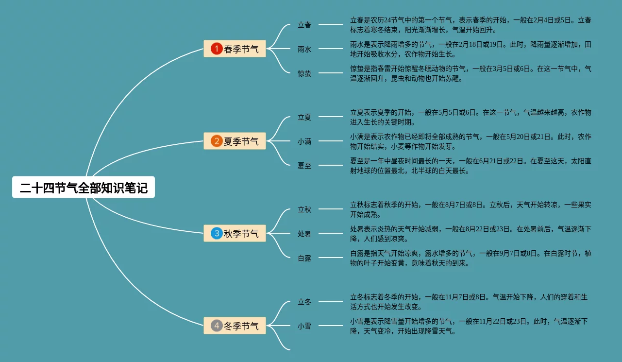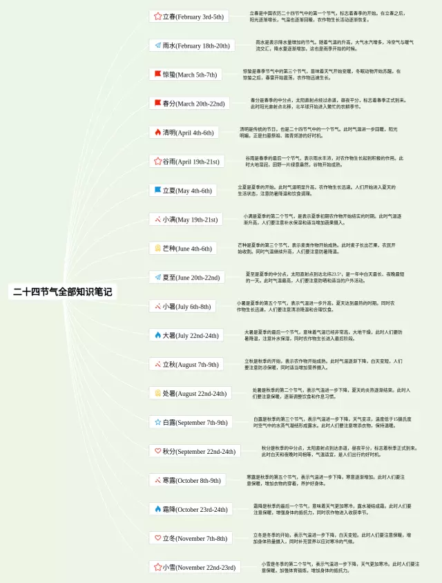 二十四节气思维导图全部节气(25张高清晰可打印)