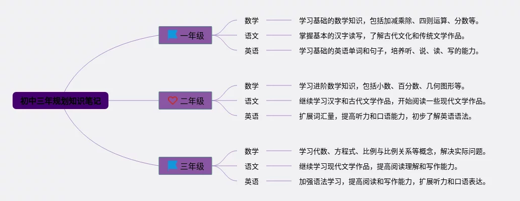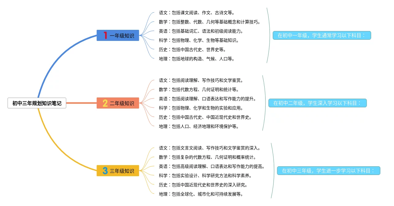 24张初中三年规划思维导图汇总,初中三年规划思维导图,内容涵盖一年级、二年级、三年级等3个方面,24张高清版,每张思维导图都非常清晰,每张图片均高清版。