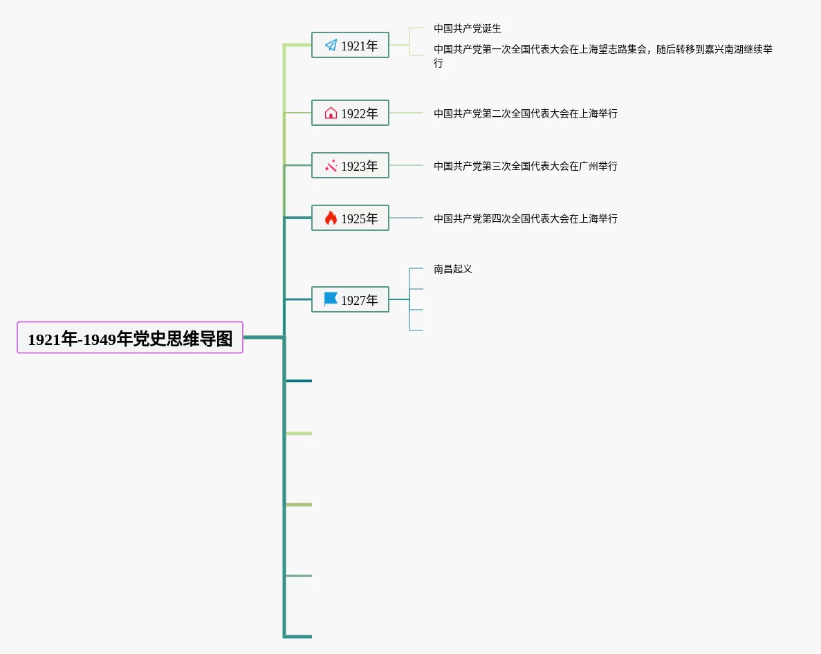 25张1927-1949年历史思维导图合集,1927-1949年历史思维导图,内容涵盖选择社会主义道路、官僚资本主义等2个要点,25张高清版,每张思维导图都非常简单,每张图片均高清版。