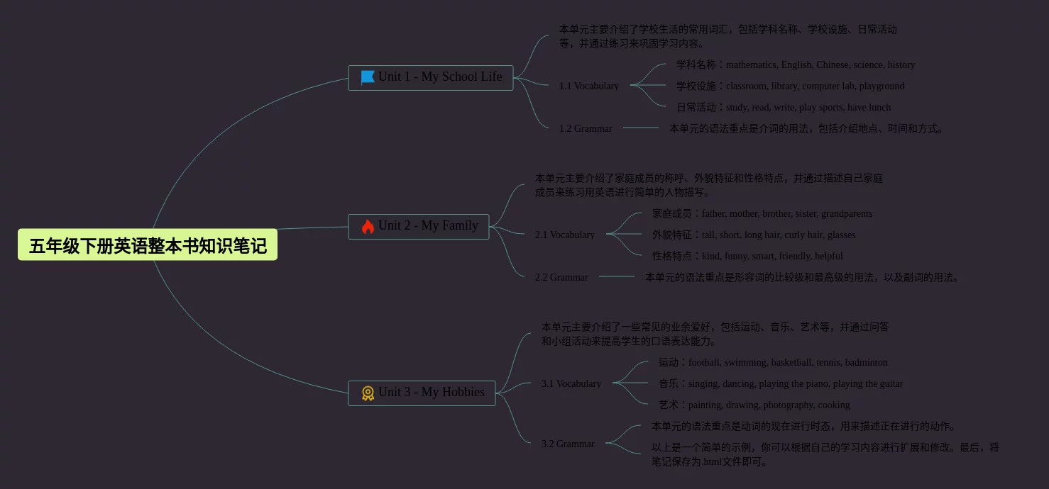 五年级下册英语整本书思维导图(20张精选版)