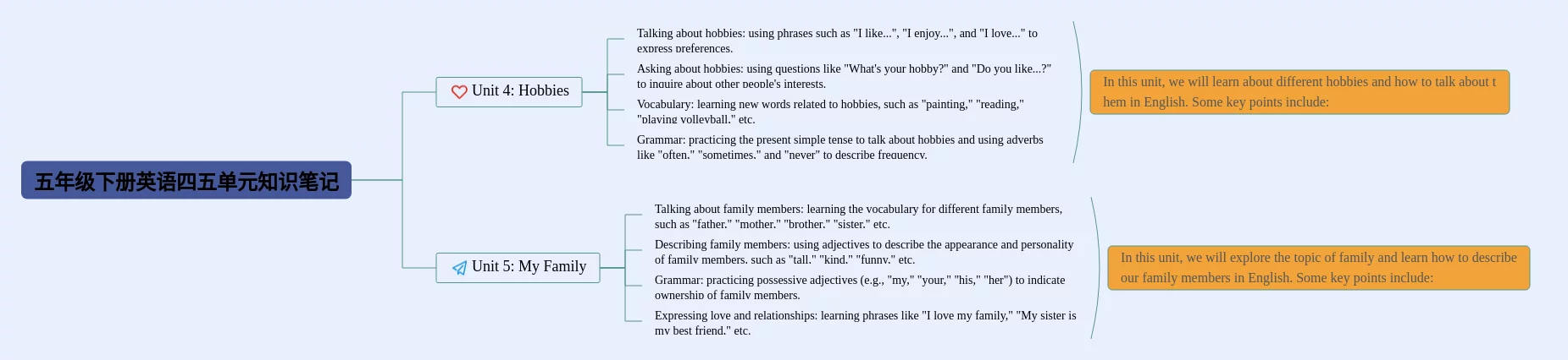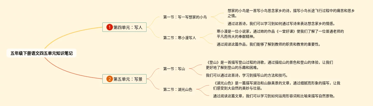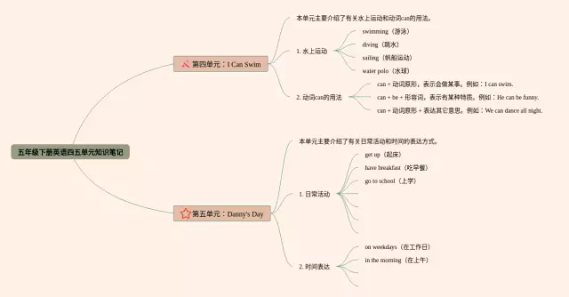 21张英语五年级下册四五单元思维导图合集,英语五年级下册四五单元思维导图,内容涵盖第四单元写景抒怀、第五单元乌鸦喝水等2个知识点,21张可打印,每张思维导图都非常简单,每张图片均可打印。