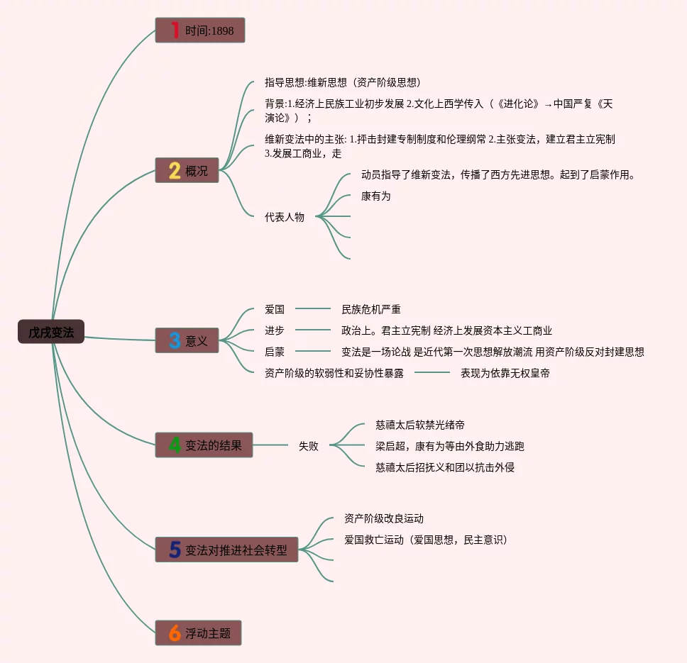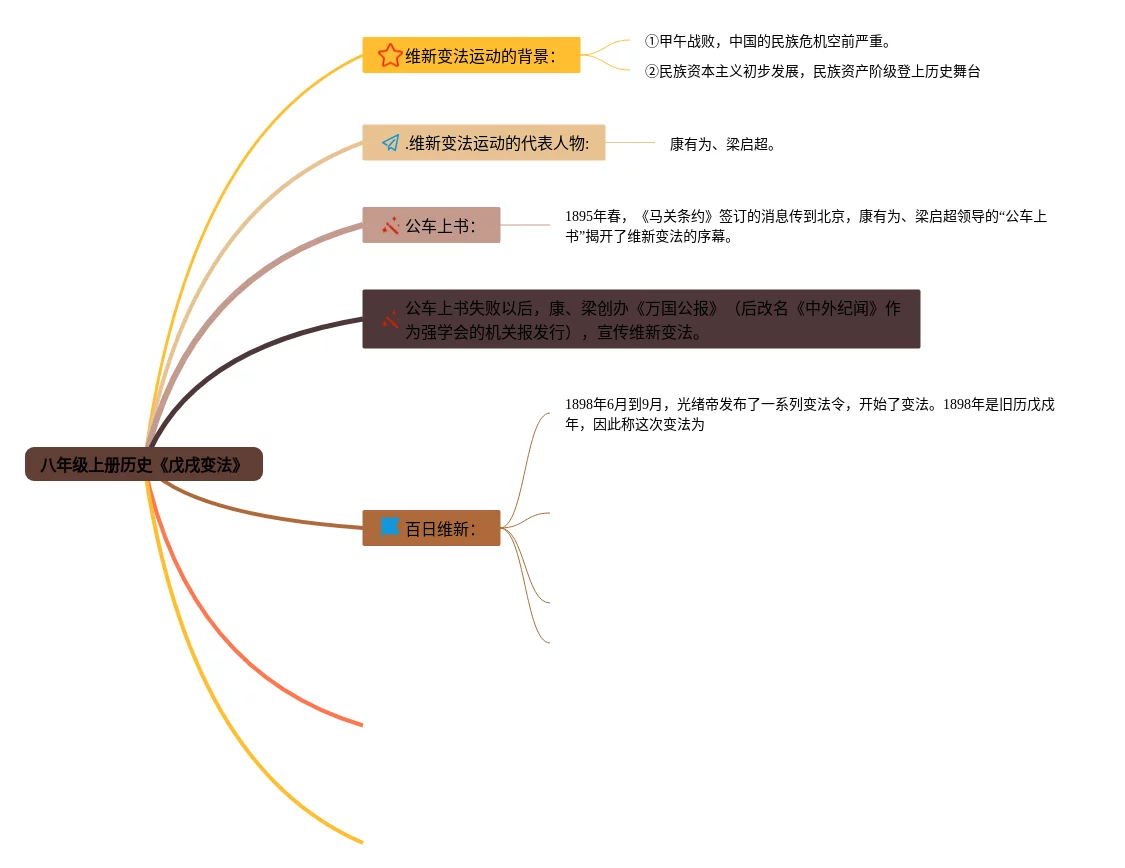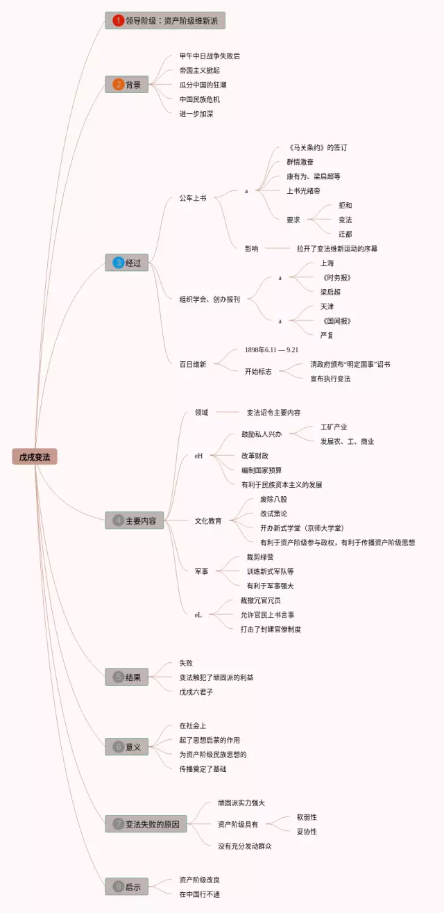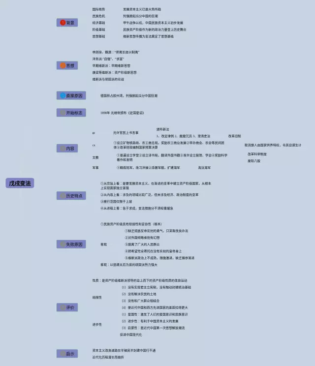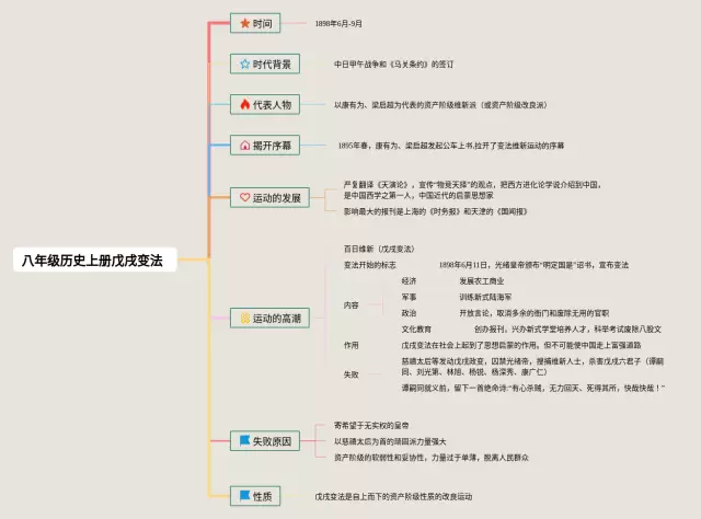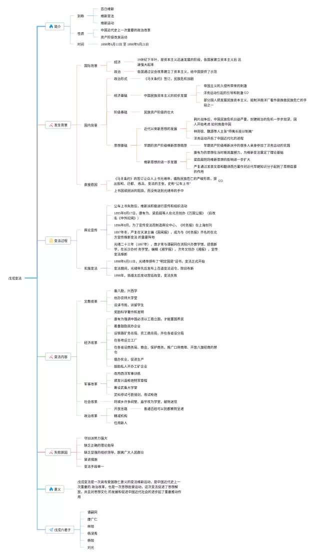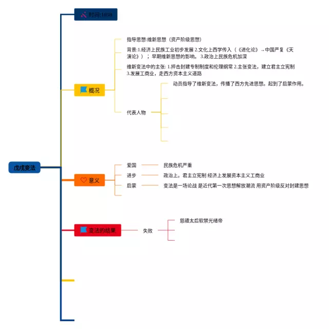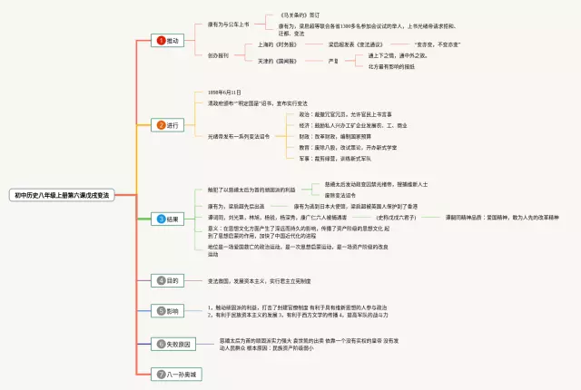 22张戊戌变法思维导图汇总,戊戌变法思维导图,内容涵盖推动、进行、结果、目的、影响等7个知识点,22张值得收藏,每张思维导图都非常清晰,每张图片均值得收藏。