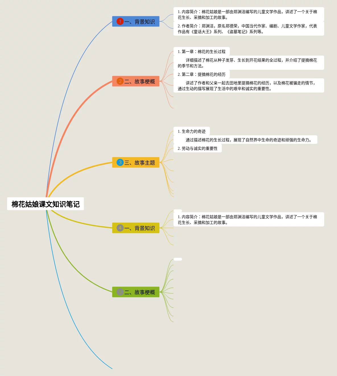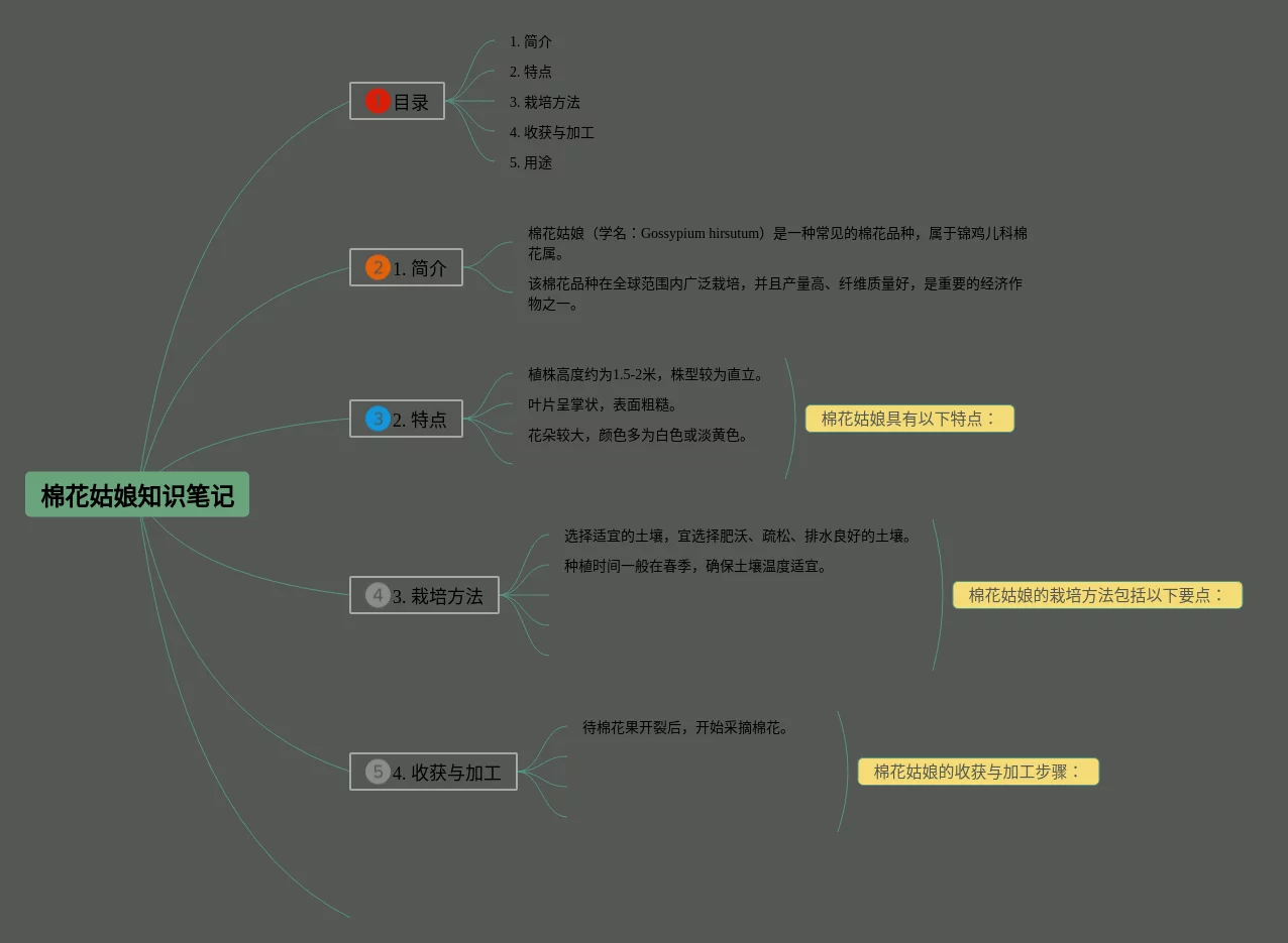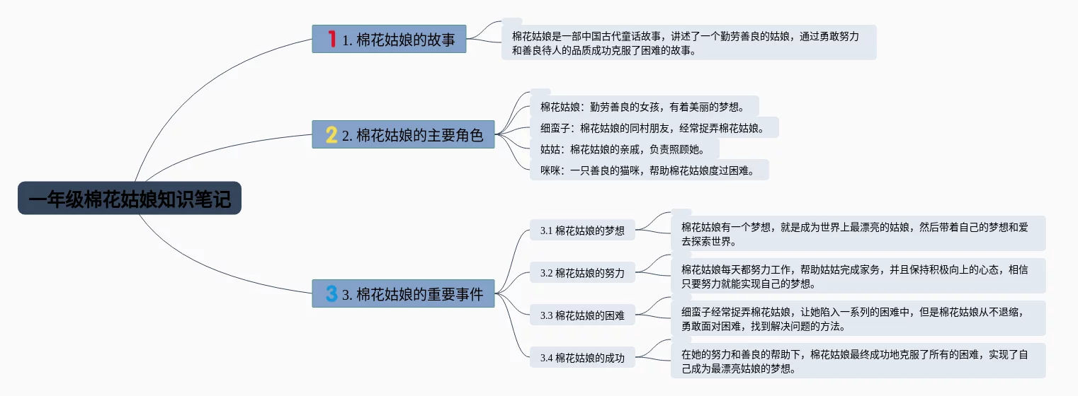 20张一年级下册语文棉花姑娘思维导图合集,一年级下册语文棉花姑娘思维导图,内容涵盖目录、1. 简介、2. 起源、3. 特点、4. 栽培方法等6个要点,20张值得收藏,每张思维导图都非常清晰,每张图片均值得收藏。