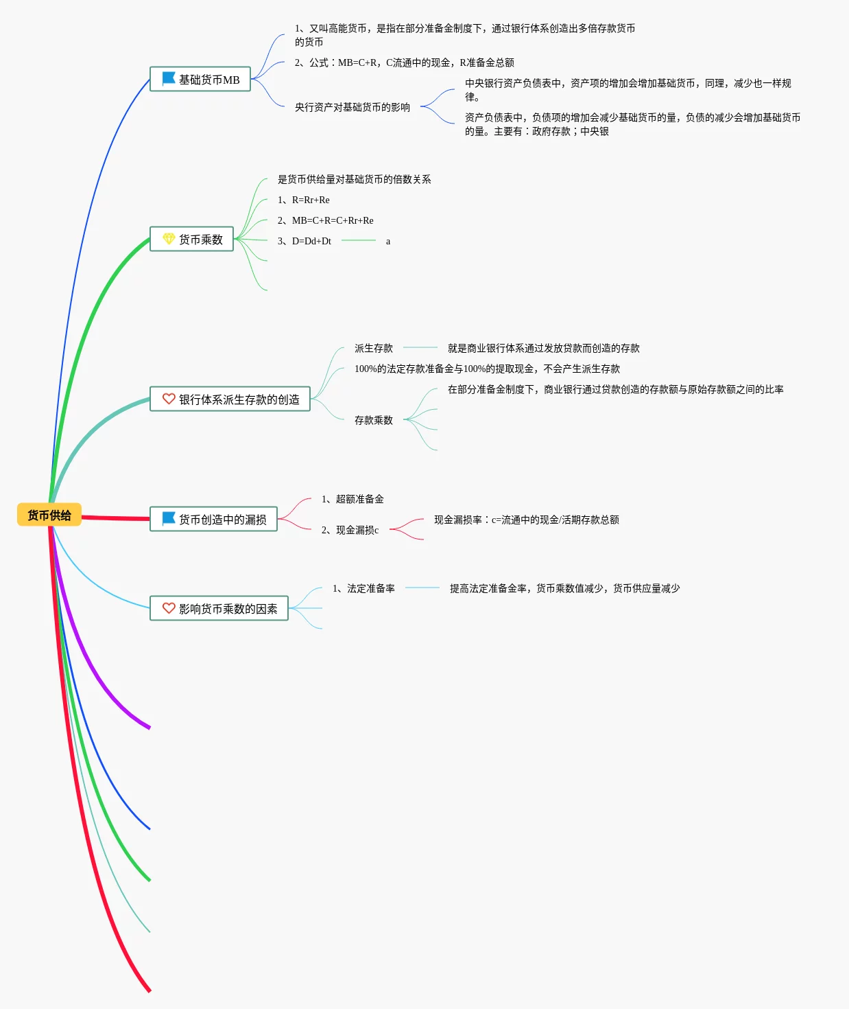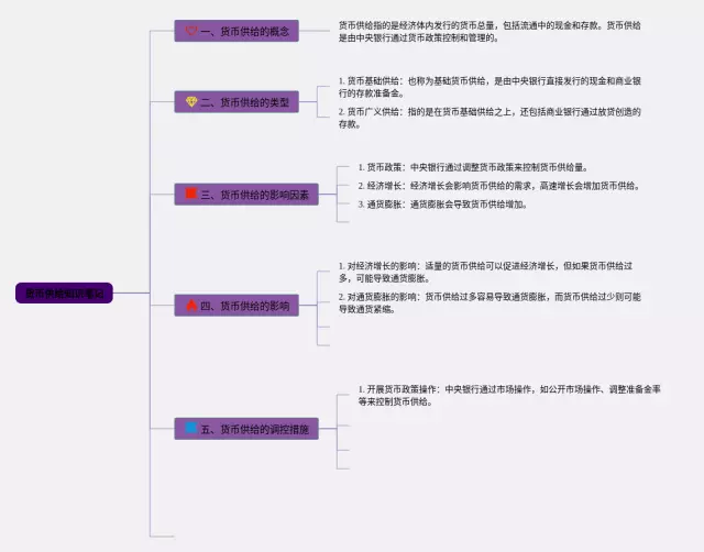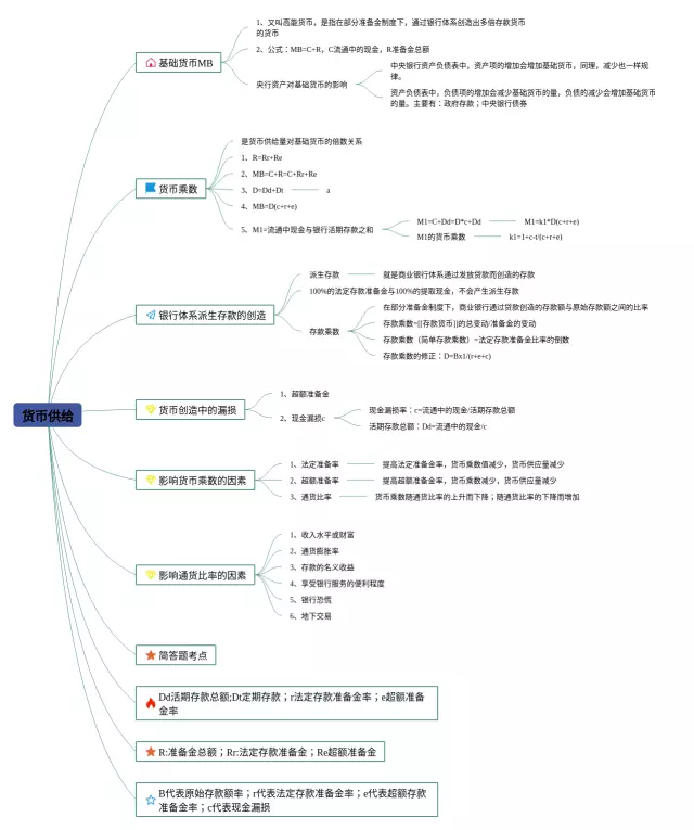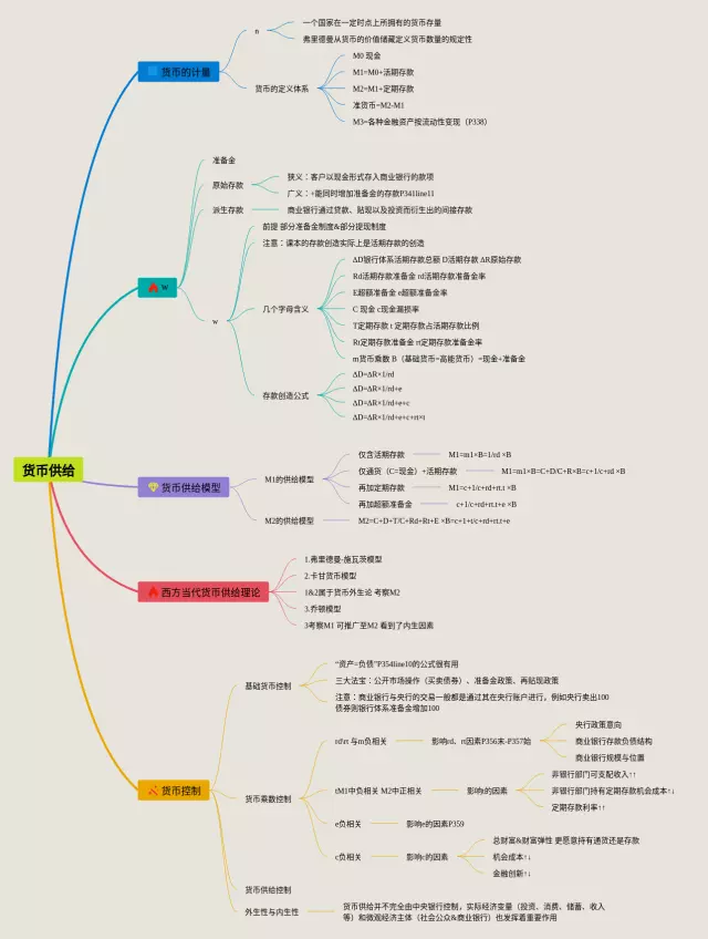 20张货币供给思维导图合集,货币供给思维导图,内容涵盖货币供给的数量界限与控制、货币乘数与货币供应量、现代信用货币的供给、中央银行与基础货币、商业银行与存款货币的创造等5个方面,20张可打印,每张思维导图都非常漂亮,每张图片均可打印。
