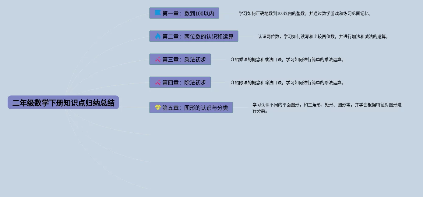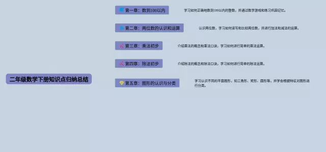 21张二年级数学知识点总结思维导图合集,二年级数学知识点总结思维导图,内容涵盖100以内的加减法、表内乘法、数学广角、单位换算、线段计算等6个知识点,21张高清版,每张思维导图都非常漂亮,每张图片均高清版。