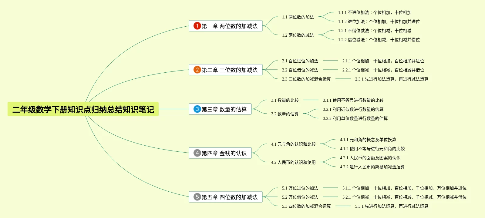 二年级数学知识点总结思维导图(21张高清版)