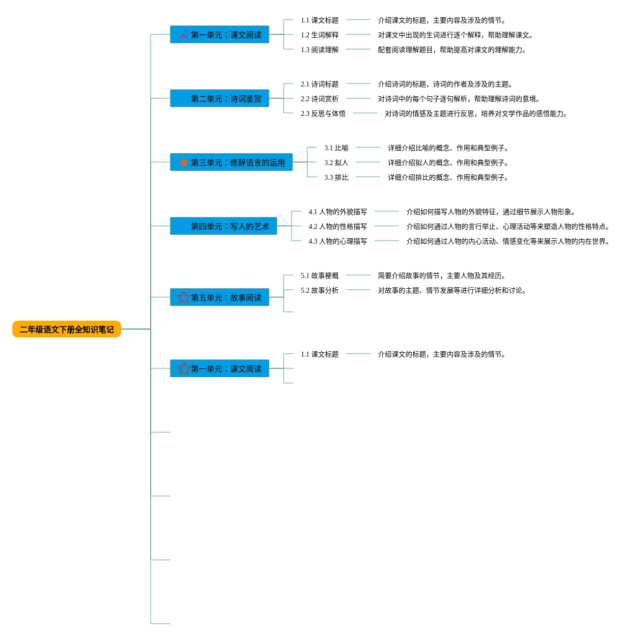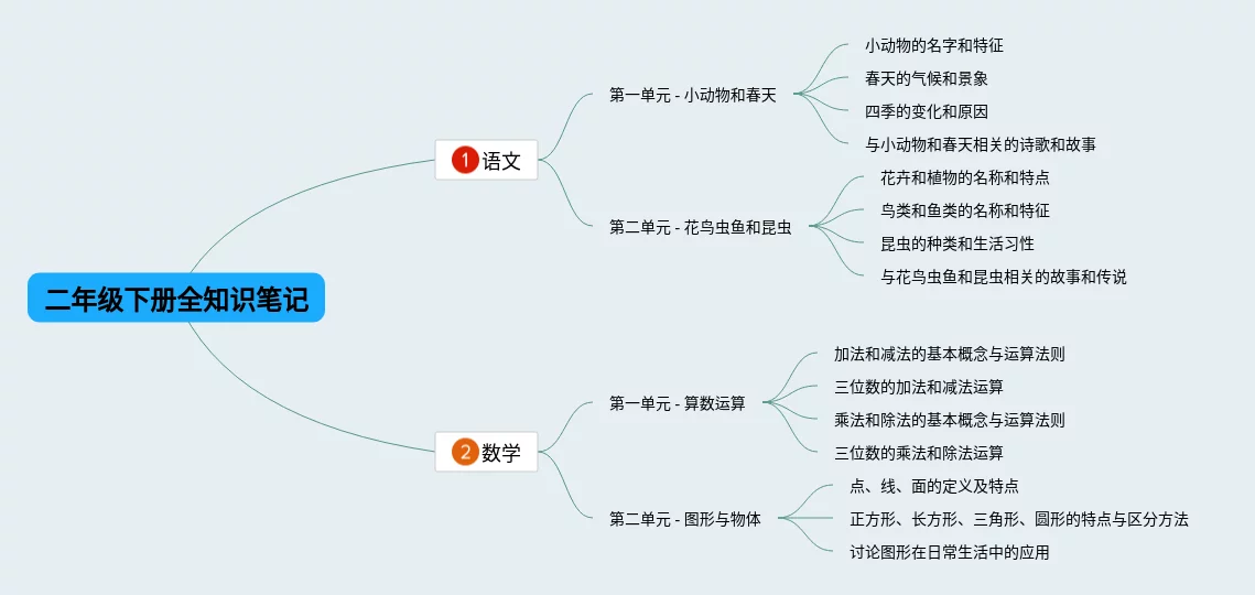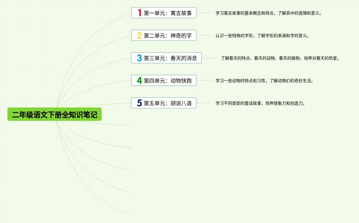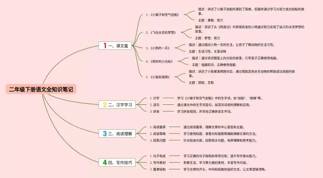 21张二年级下册语文全思维导图汇总,二年级下册语文全思维导图,内容涵盖语文、数学、英语、科学等4个知识点,21张高清晰可打印,每张思维导图都非常简单,每张图片均高清晰可打印。