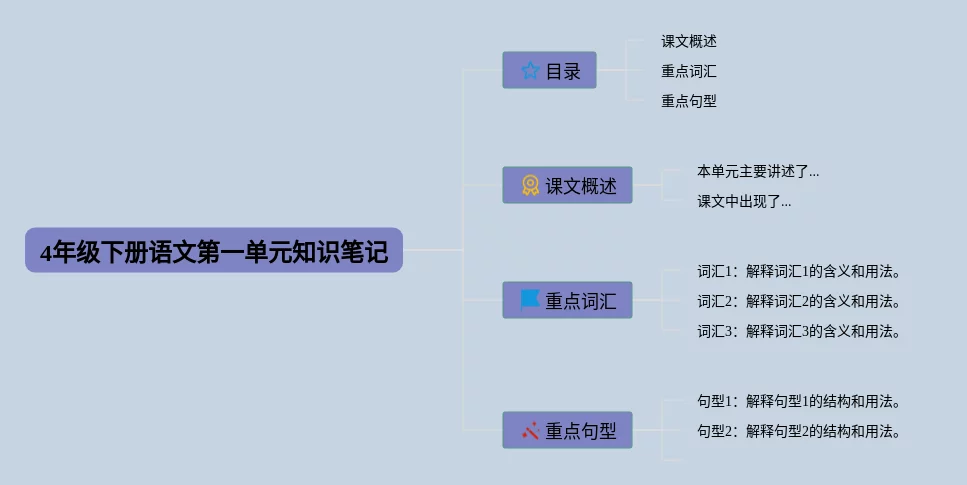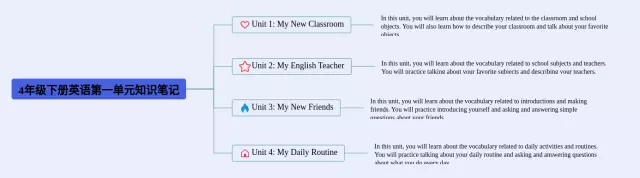 24张4年级下册第一单元思维导图合集,4年级下册第一单元思维导图,内容涵盖等0个知识点,24张高清版,每张思维导图都非常清晰,每张图片均高清版。