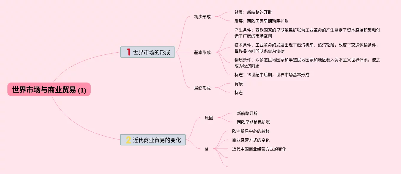 24张世界市场与商业贸易思维导图合集,世界市场与商业贸易思维导图,内容涵盖世界市场的形成、近代商品贸易的变化(商业)等2个知识点,24张高清晰可打印,每张思维导图都非常漂亮,每张图片均高清晰可打印。