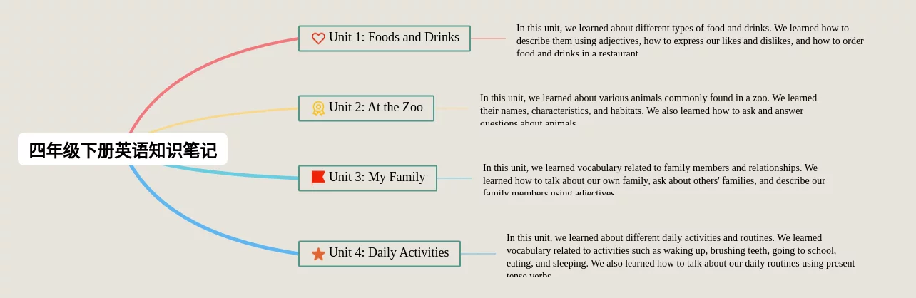 四年级英语一到五单元思维导图(24张可打印)