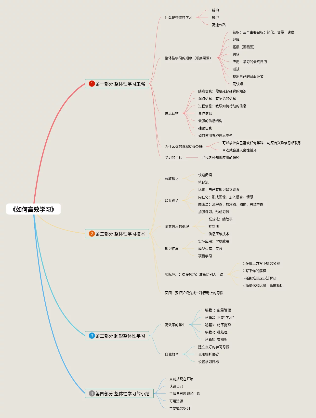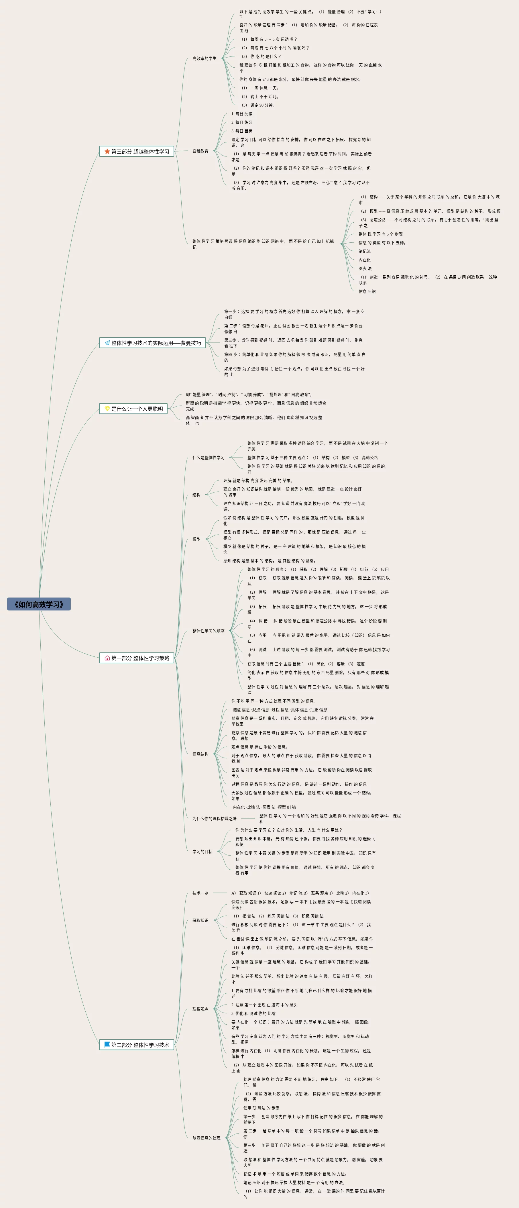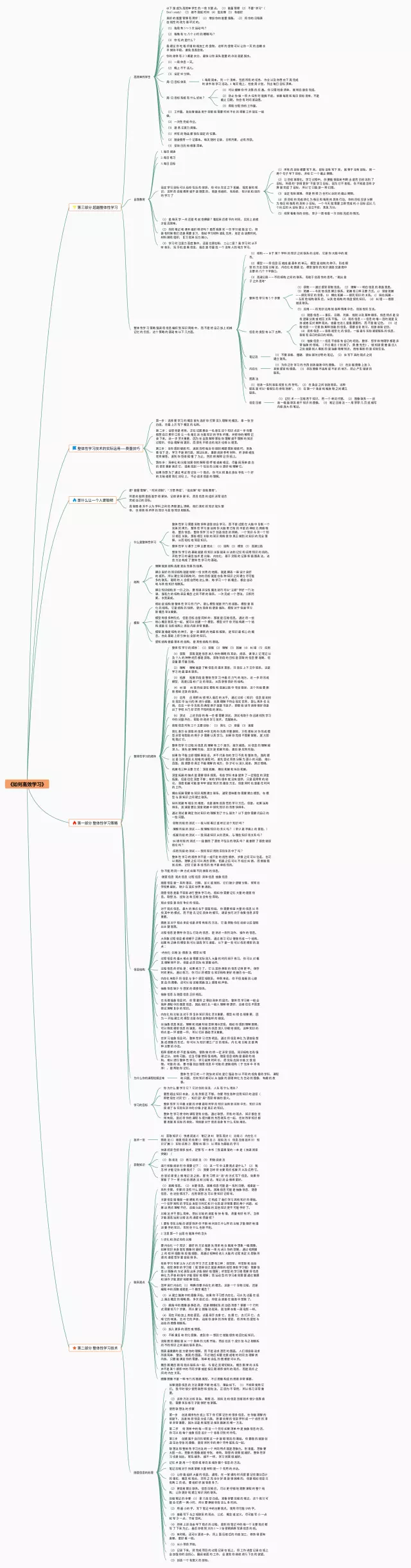 25张如何高效学习思维导图汇总,如何高效学习思维导图,内容涵盖第三部分 超越整体性学习、是什么让一个人更聪明、第一部分 整体性学习策略、第二部分 整体性学习技术等4个部分,25张附打印高清版,每张思维导图都非常清晰,每张图片均附打印高清版。