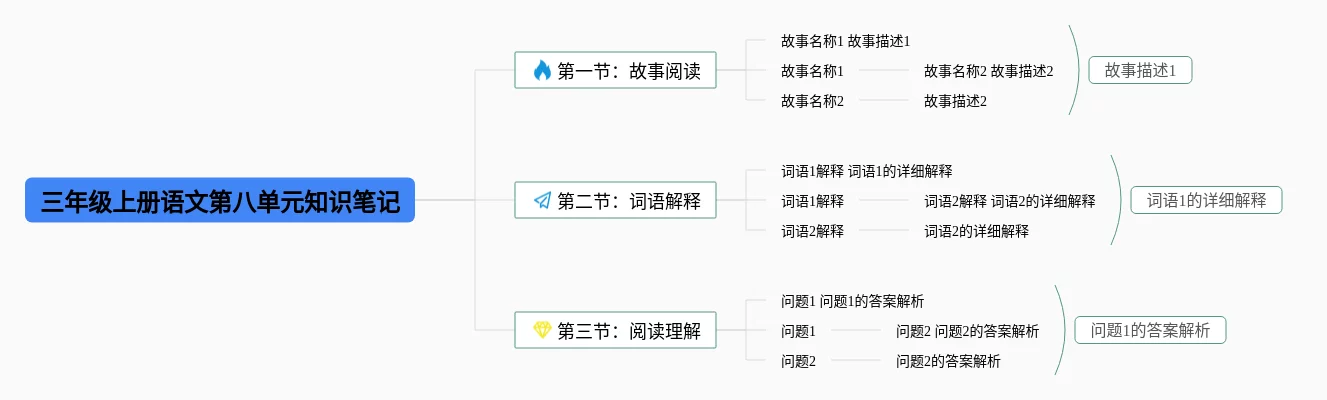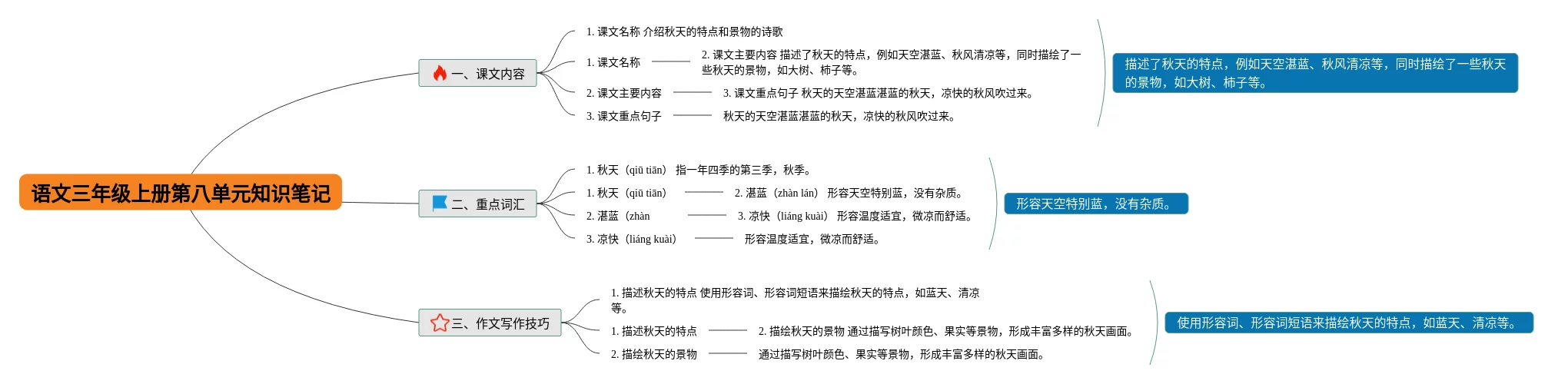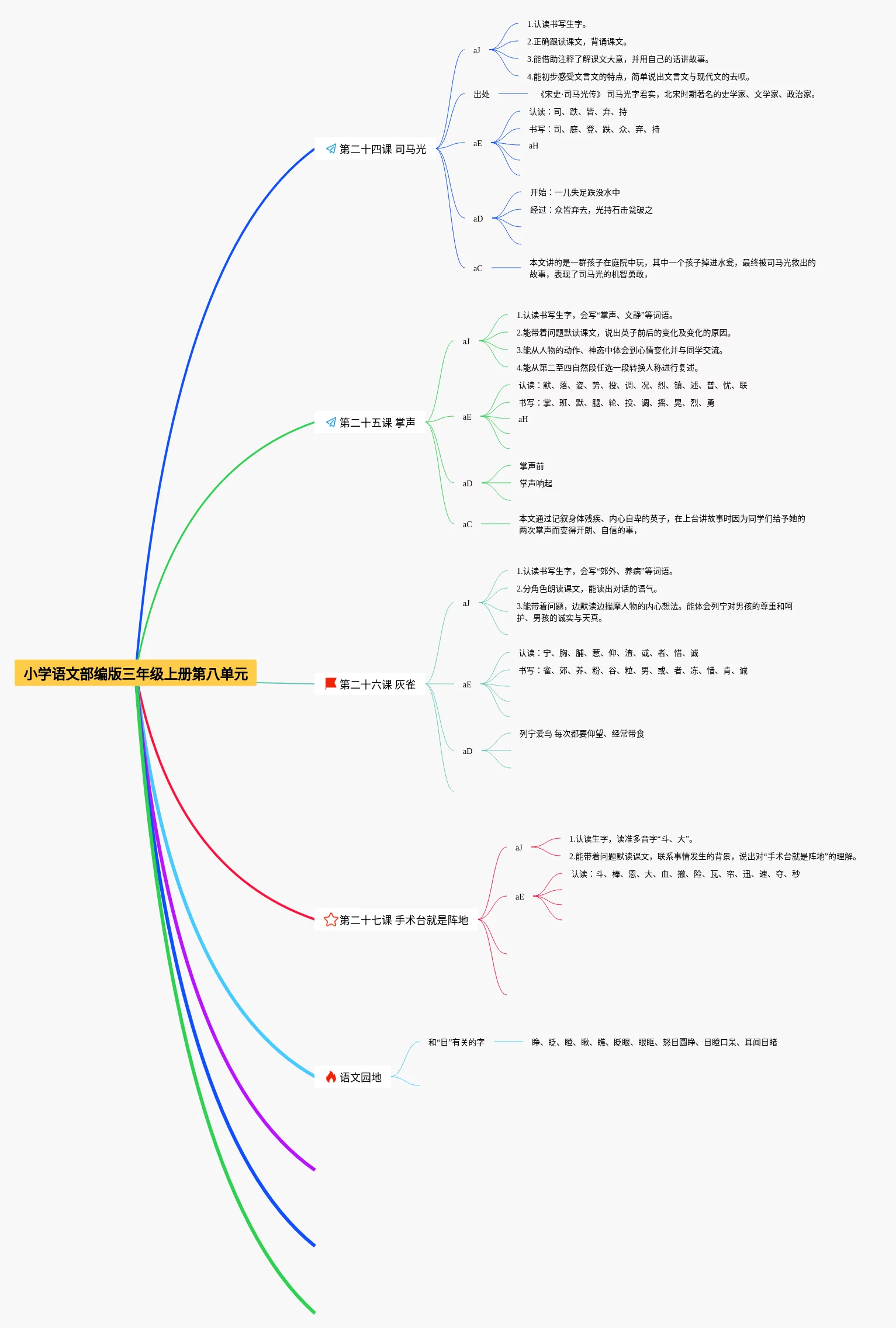 三年级上册第八单元思维导图合集,语文三年级上册第八单元思维导图,内容涵盖识写词语、词语辨析、语法知识等3个方面,20张高清晰可打印,每张思维导图都非常漂亮,每张图片均高清晰可打印。