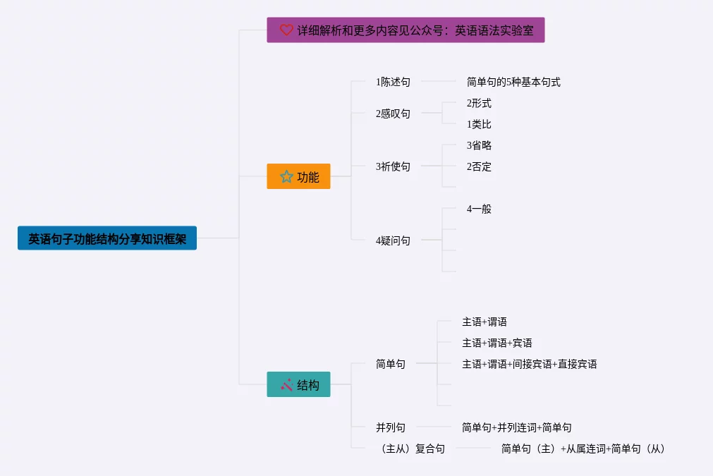 20张英语句子基本结构思维导图汇总,英语句子基本结构思维导图,内容涵盖非简单句、特殊语言现象等2个方面,20张值得收藏,每张思维导图都非常漂亮,每张图片均值得收藏。