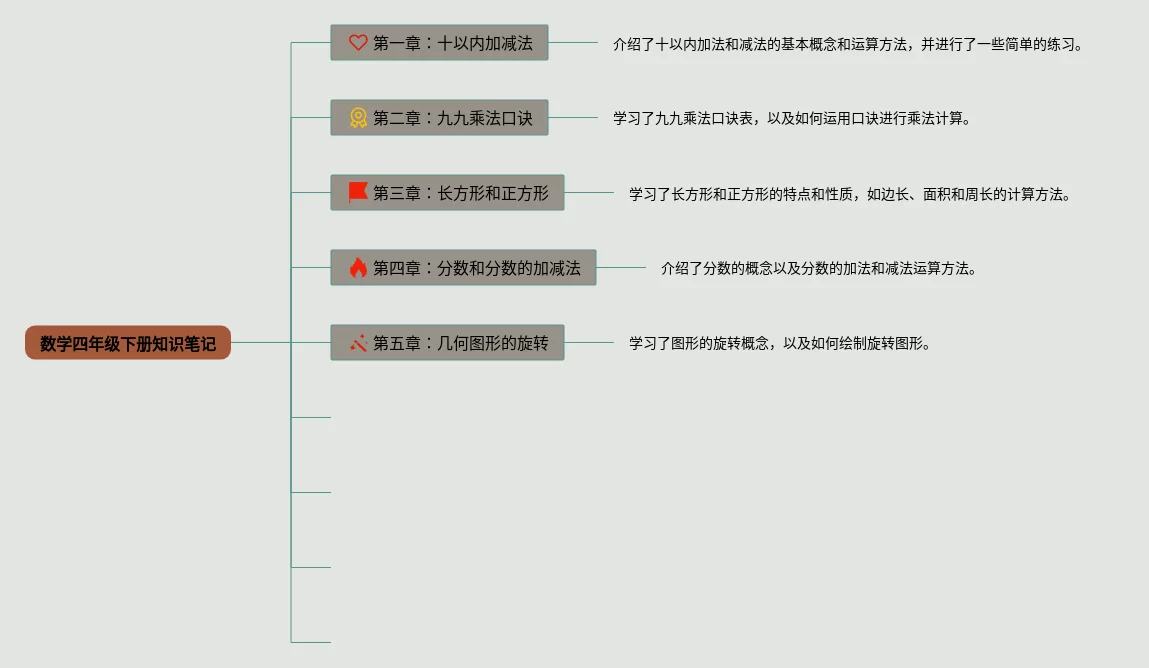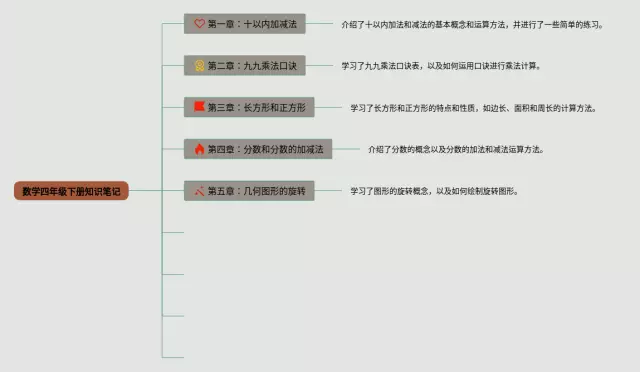 25张数学四年级下册思维导图内容合集,数学四年级下册思维导图内容,内容涵盖第一章 两位数与三位数加减法、第二章 带有0和9的计算、第三章 用乘法和除法解决问题、第四章 分数等4个部分,25张附下载,每张思维导图都非常漂亮,每张图片均附下载。