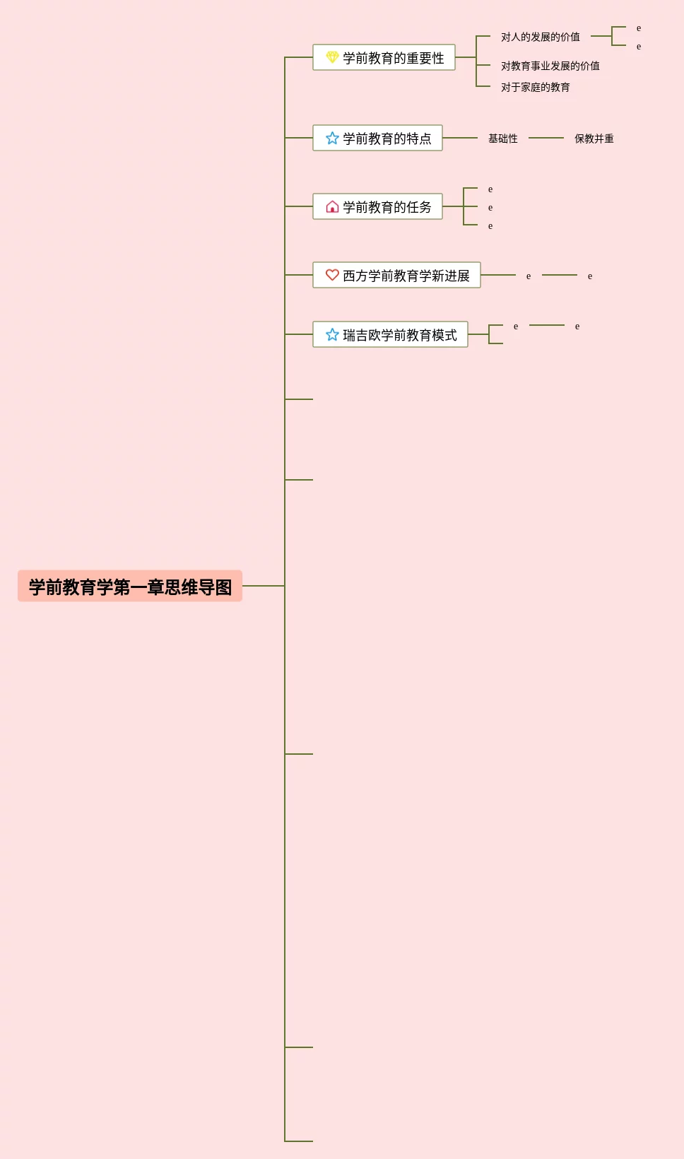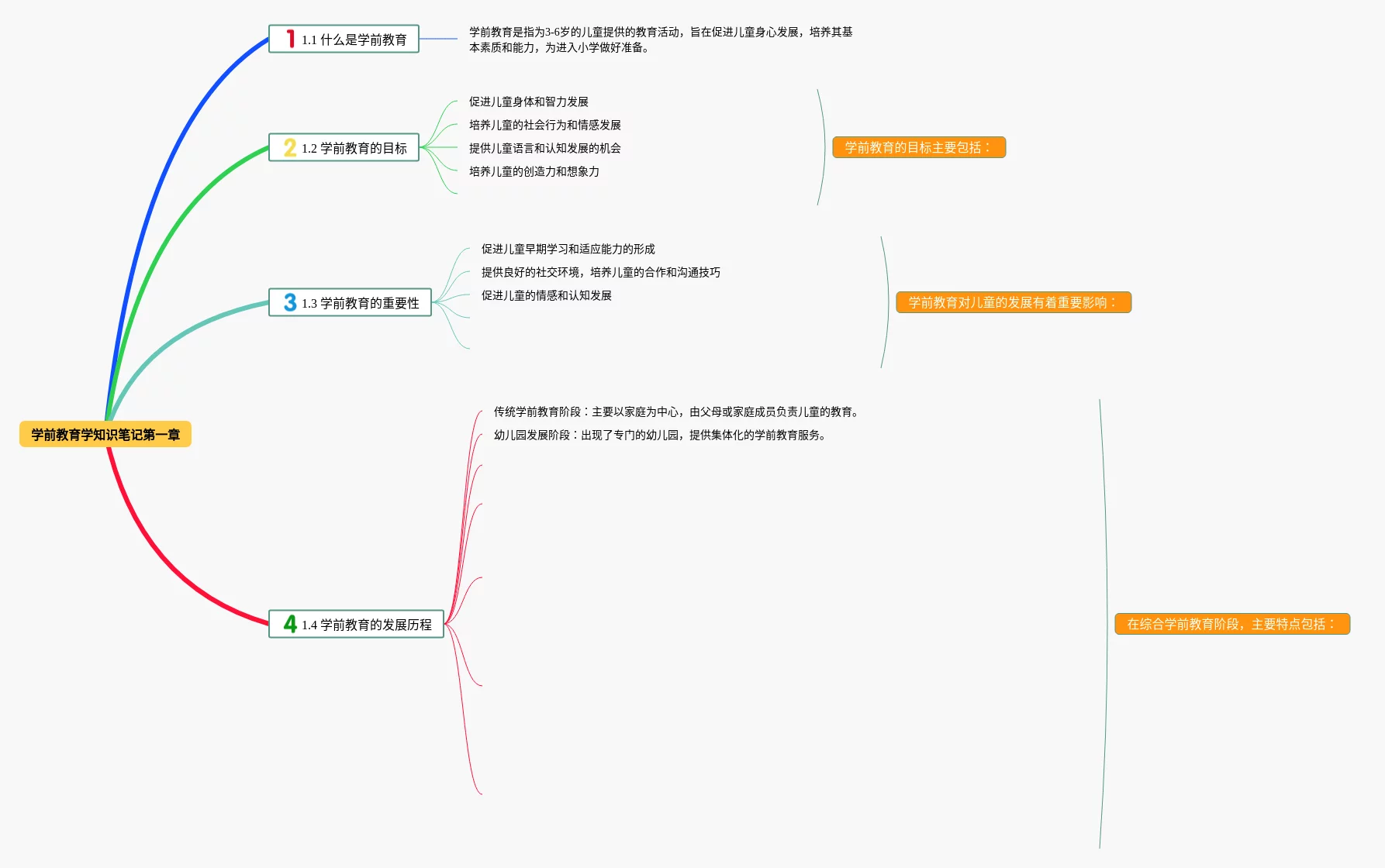 20张学前教育学第一章思维导图汇总,学前教育学第一章思维导图,内容涵盖幼儿园教育原则和特点、幼儿园教育内容、幼儿园环境创设的重要性、幼儿园班级管理的管理的概述等4个方面,20张可打印,每张思维导图都非常漂亮,每张图片均可打印。