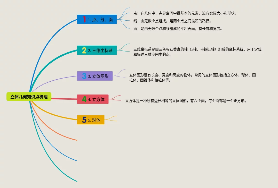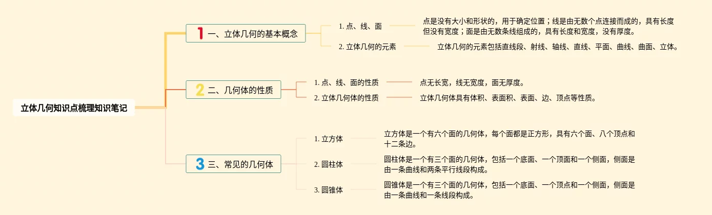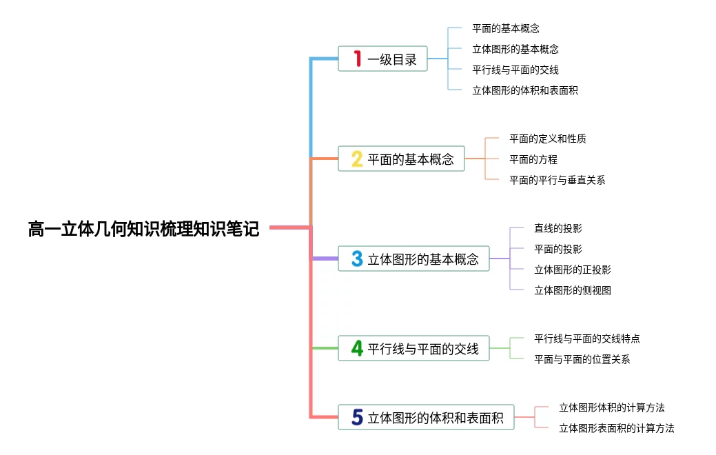 21张高一立体几何知识梳理思维导图合集,高一立体几何知识梳理思维导图,内容涵盖1. 体积与表面积、2. 空间几何体、3. 空间几何体的关系、4. 空间几何体的性质等4个部分,21张高清版,每张思维导图都非常清晰,每张图片均高清版。