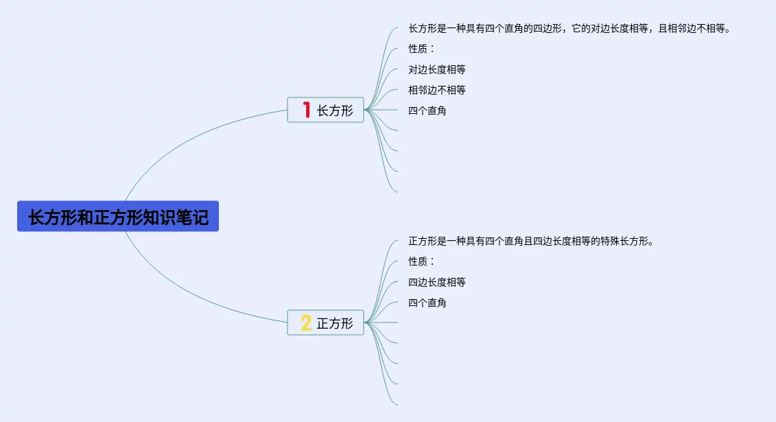 21张三年级下册长方形和正方形的思维导图合集,三年级下册长方形和正方形的思维导图,内容涵盖1. 长方形、2. 正方形等2个部分,21张值得收藏,每张思维导图都非常简单,每张图片均值得收藏。