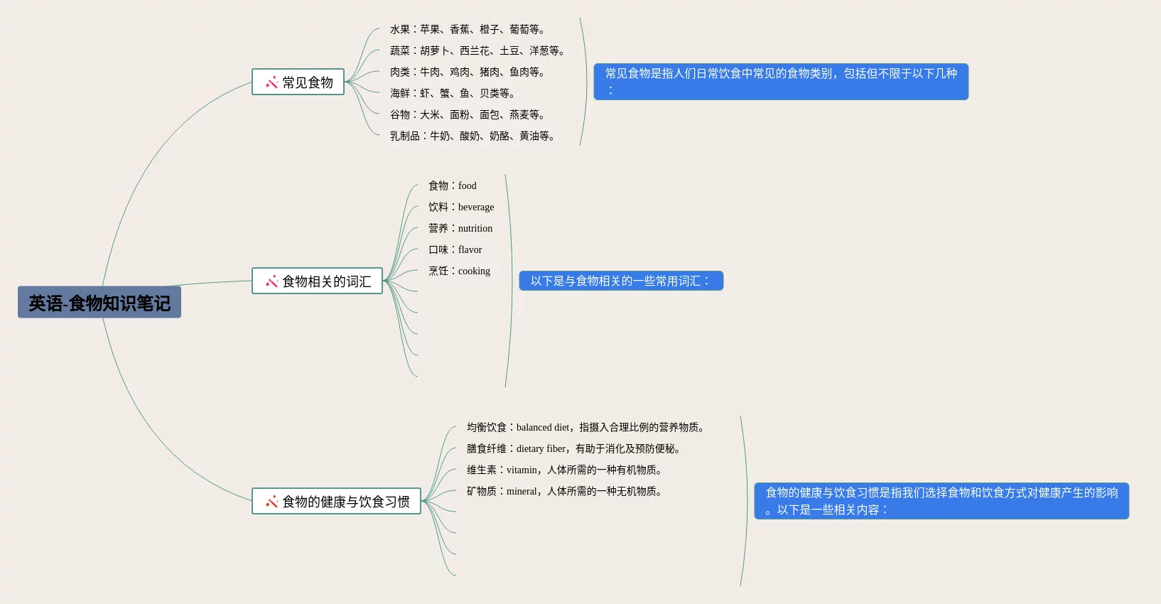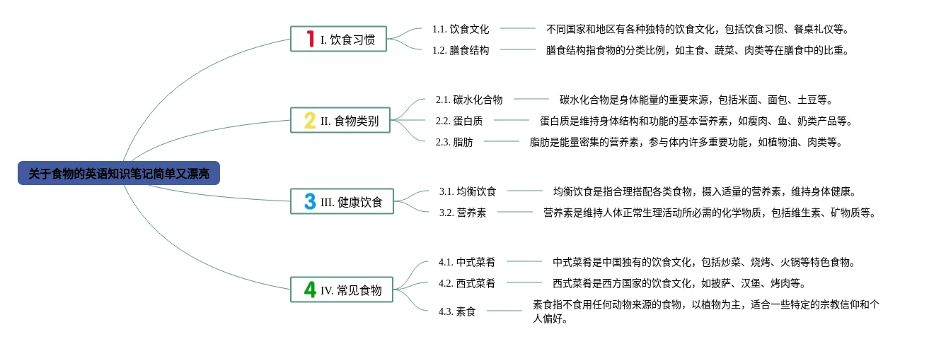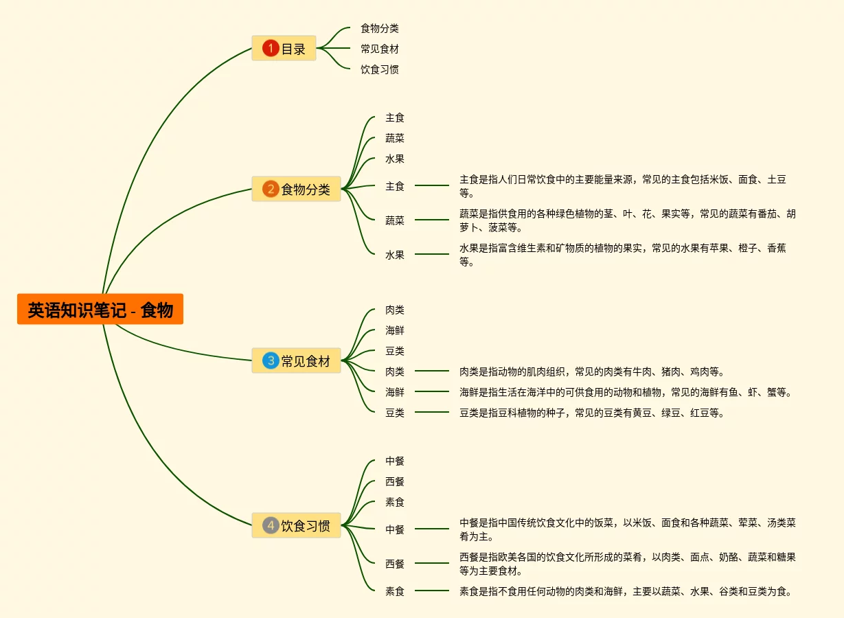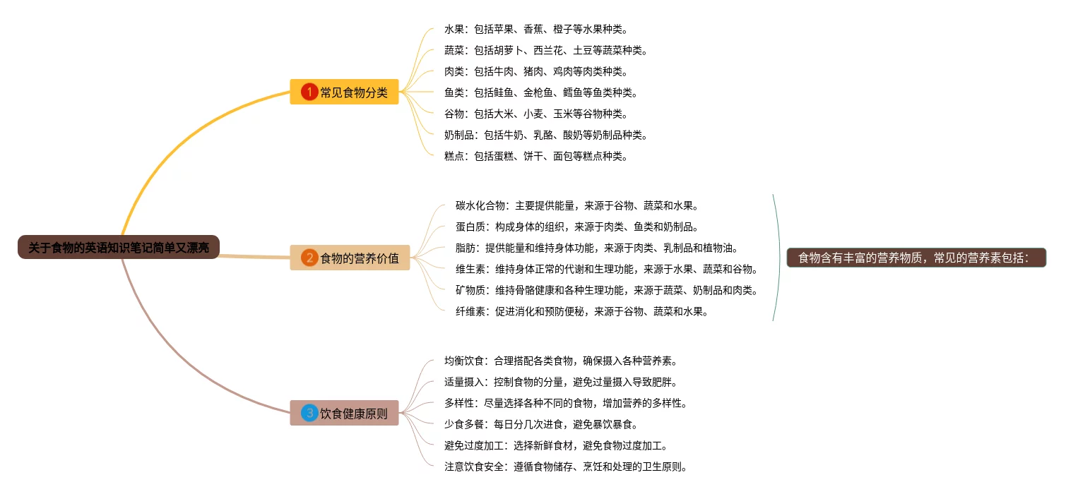 25张关于食物的思维导图英语汇总,关于食物的思维导图英语,内容涵盖等0个知识点,25张高清晰可打印,每张思维导图都非常漂亮,每张图片均高清晰可打印。
