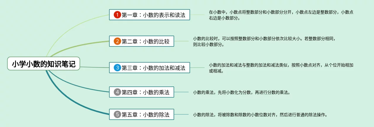20张小学小数的思维导图合集,小学小数的思维导图,内容涵盖第一章小数的表示和读法、第二章小数的比较、第三章小数的加法和减法、第四章小数的乘法、第五章小数的除法等5个方面,20张可打印,每张思维导图都非常漂亮,每张图片均可打印。