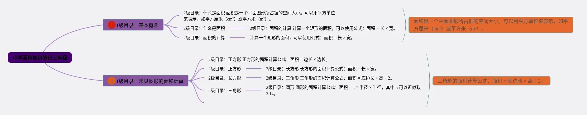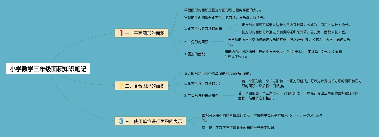 小学数学面积思维导图三年级(23张附下载)