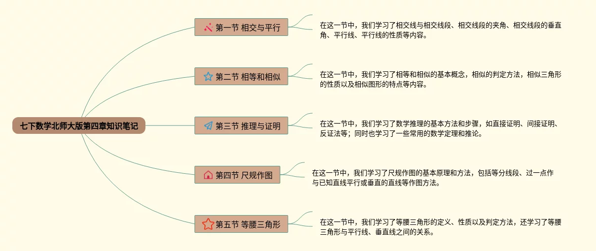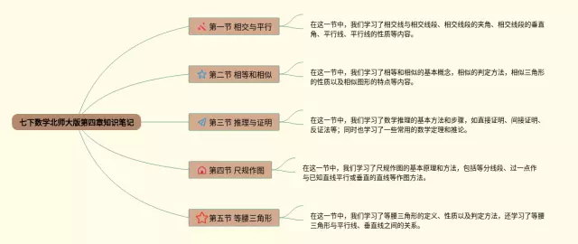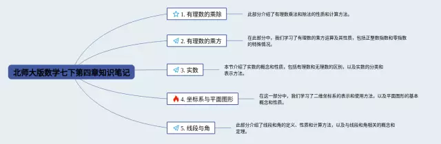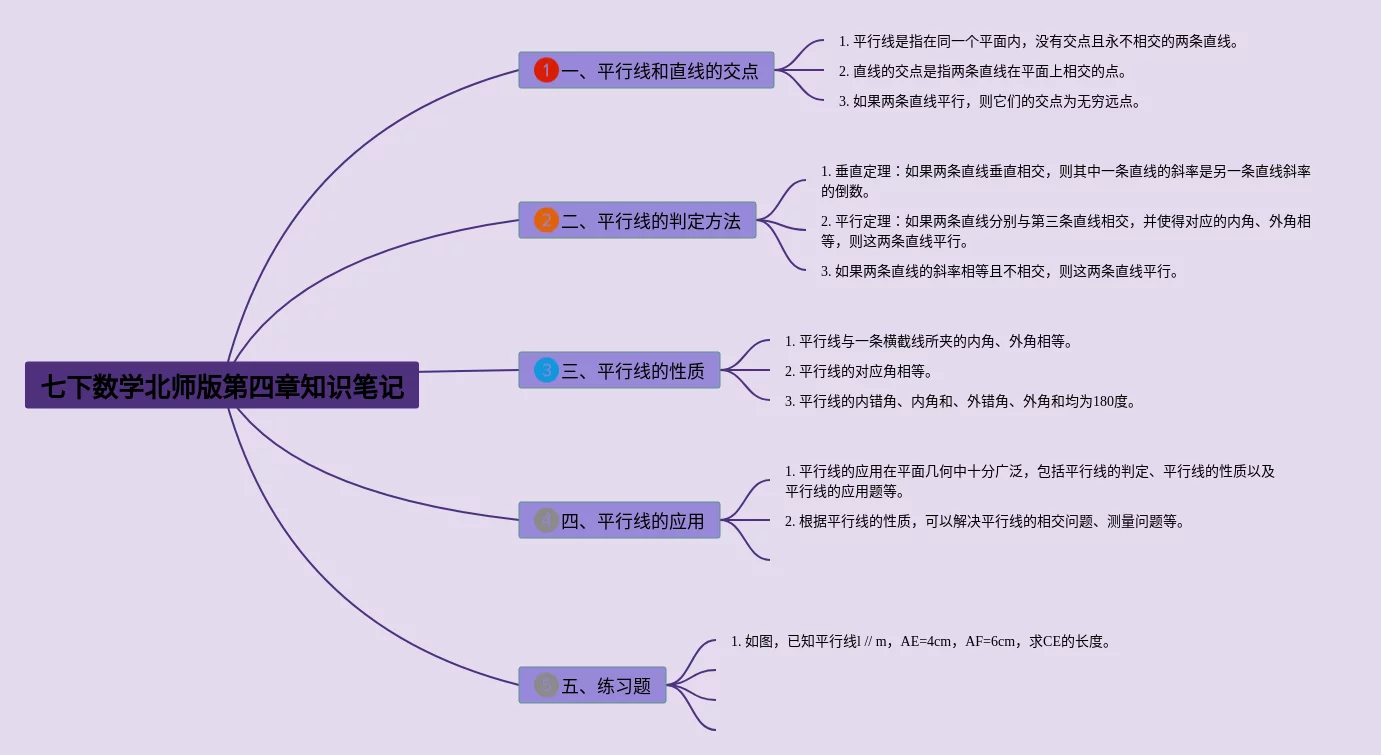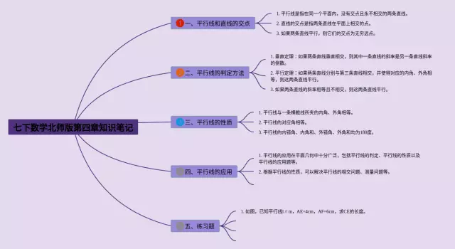 24张北师大版七下数学第四章思维导图合集,北师大版七下数学第四章思维导图,内容涵盖平行线和直线的交点、平行线的判定方法、平行线的性质、平行线的应用、练习题等5个方面,24张附下载,每张思维导图都非常漂亮,每张图片均附下载。