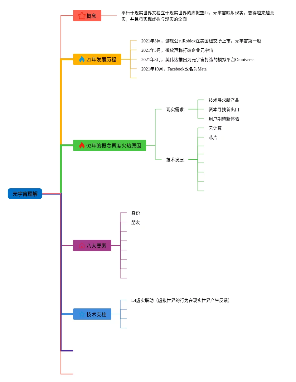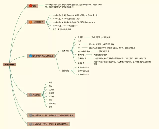 23张元宇宙思维导图合集,元宇宙思维导图,内容涵盖元宇宙的概念及特征、元宇宙技术推进脉络、未来社会发展新趋向等3个部分,23张值得收藏,每张思维导图都非常清晰,每张图片均值得收藏。