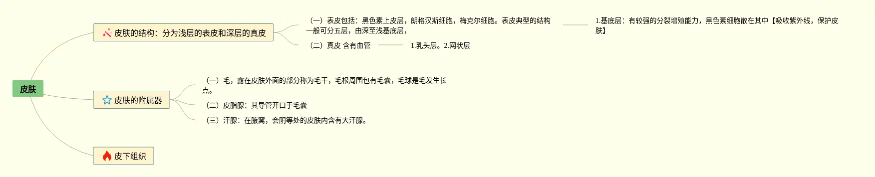 23张皮肤的思维导图汇总,皮肤的思维导图,内容涵盖皮肤的附属器、皮下组织等2个部分,23张可下载,每张思维导图都非常简单,每张图片均可下载。