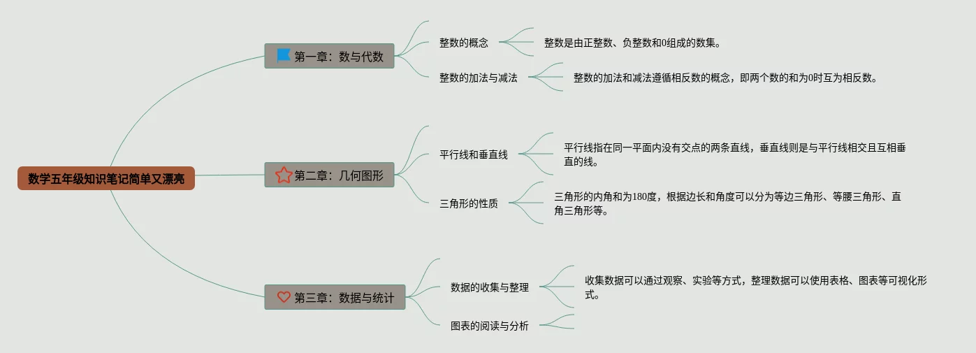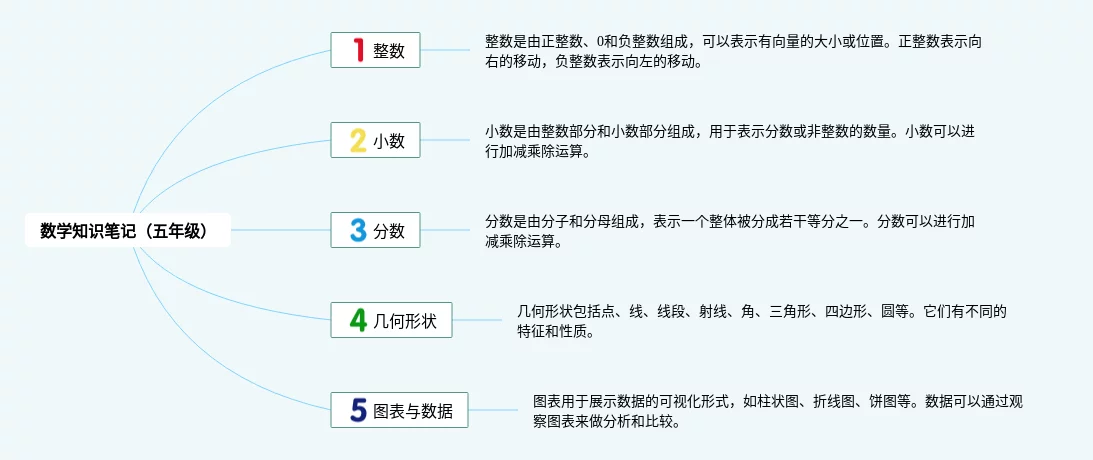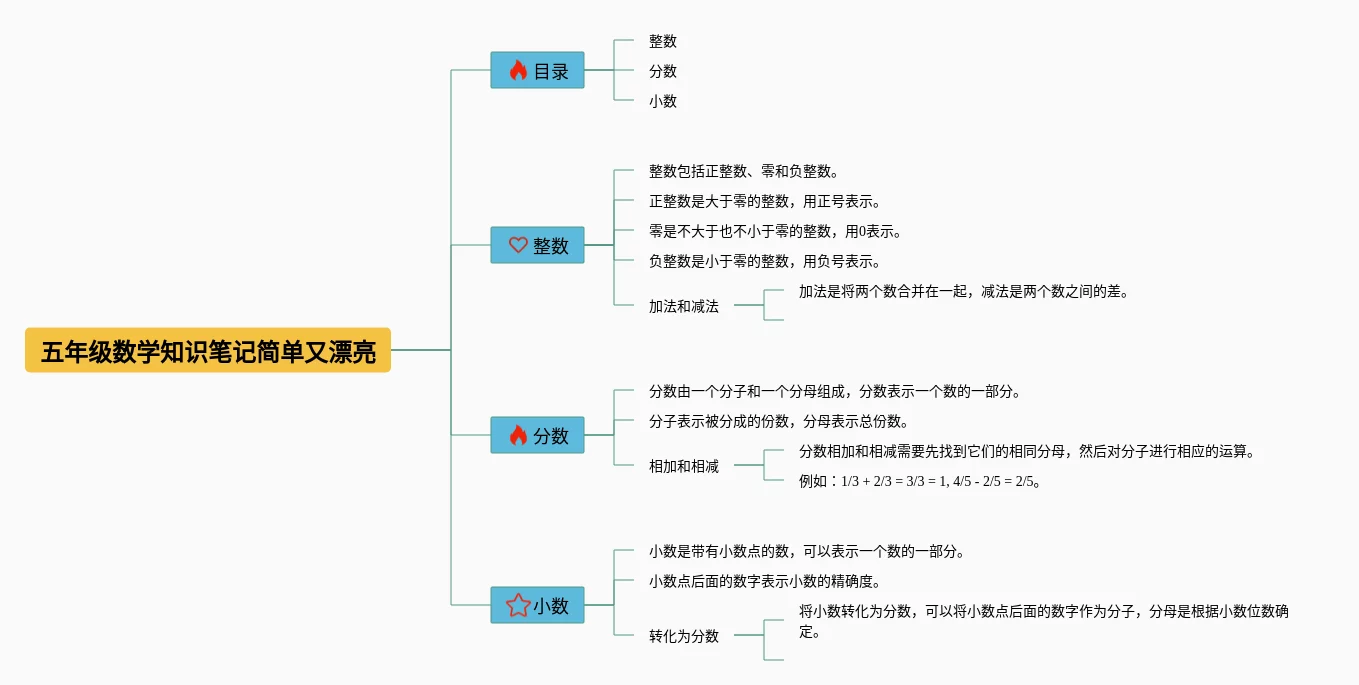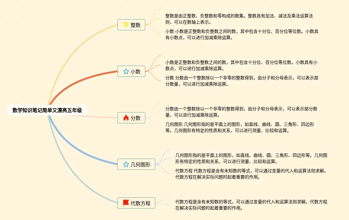 24张五年级数学思维导图简单又漂亮汇总,五年级数学思维导图简单又漂亮,内容涵盖基础数学、代数、几何、函数、统计与概率等5个方面,24张附打印高清版,每张思维导图都非常简单,每张图片均附打印高清版。