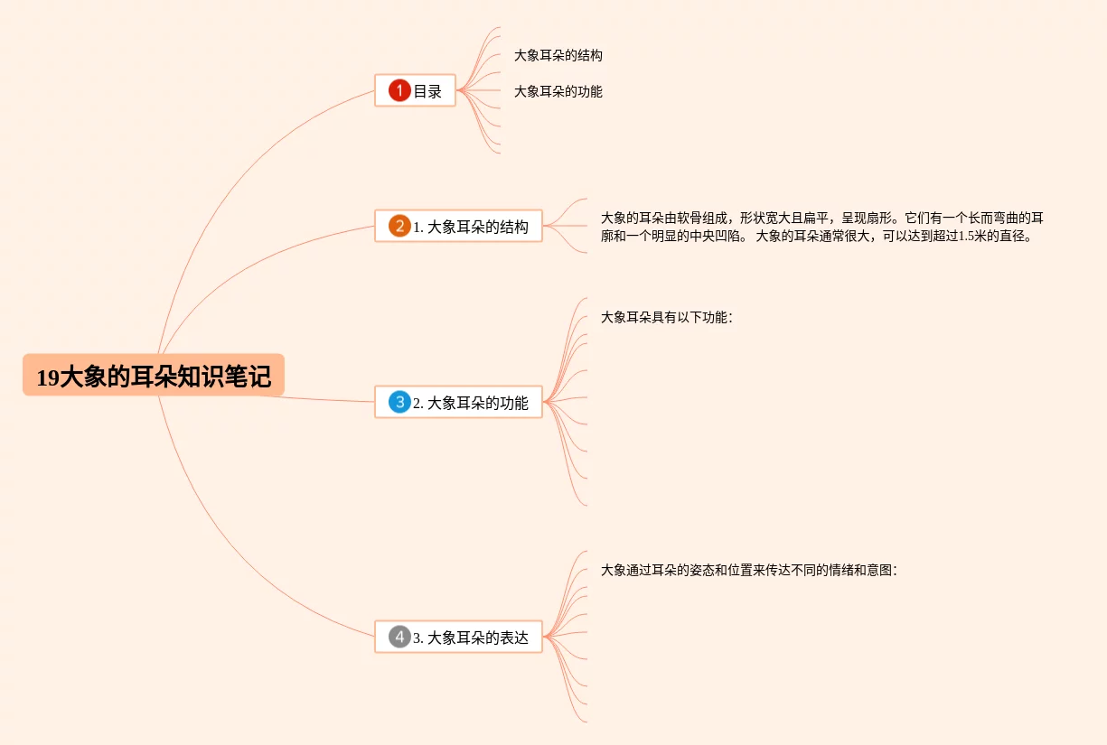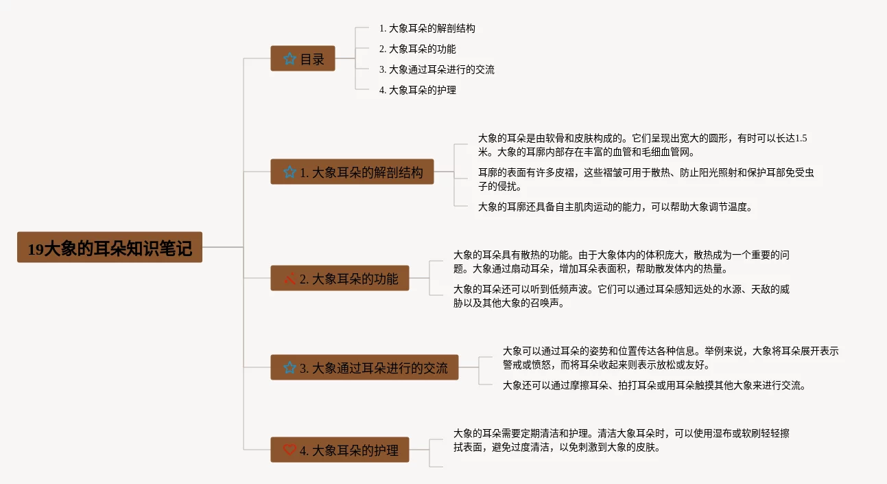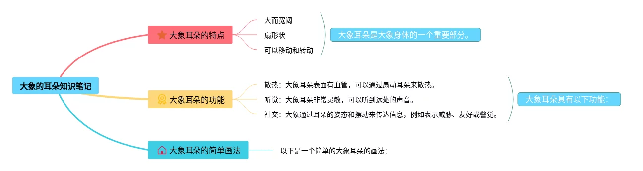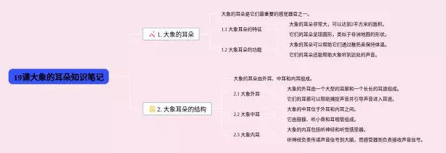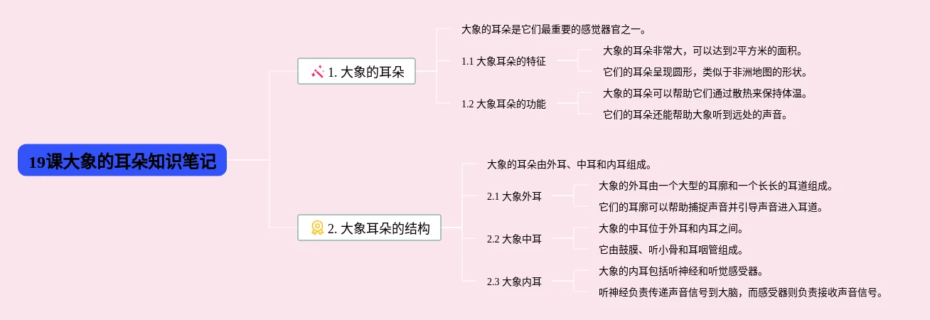 22张大象的耳朵的思维导图汇总,大象的耳朵的思维导图,内容涵盖第一章大象耳朵基础知识、第二章大象耳朵的生长环境、第三章大象耳朵的繁殖方法、第四章大象耳朵的用途、第五章大象耳朵的养护方法等5个知识点,22张高清晰可打印,每张思维导图都非常清晰,每张图片均高清晰可打印。