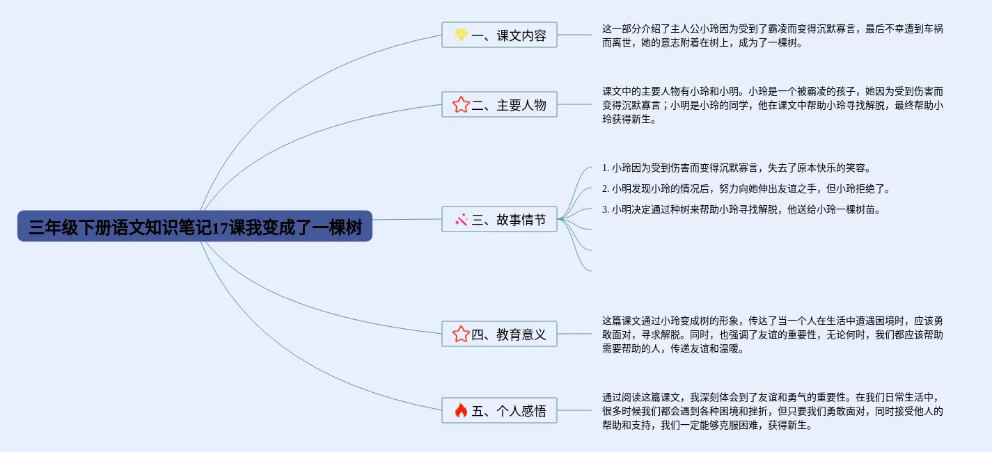 三年级下册语文思维导图17课我变成了一棵树(23张可下载)