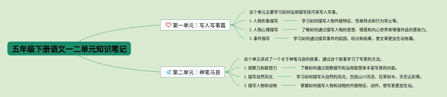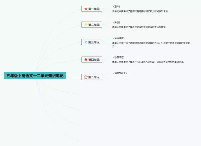 20张语文五年级下册一二单元思维导图合集,语文五年级下册一二单元思维导图,内容涵盖第一单元、第二单元等2个方面,20张精选版,每张思维导图都非常漂亮,每张图片均精选版。