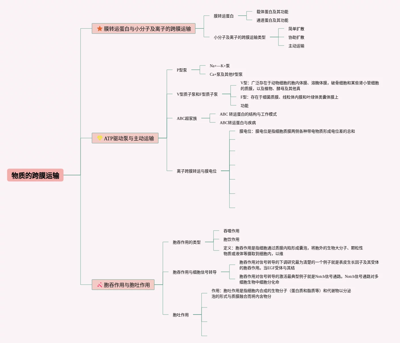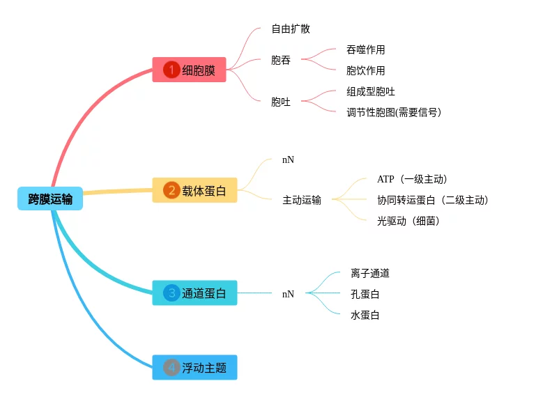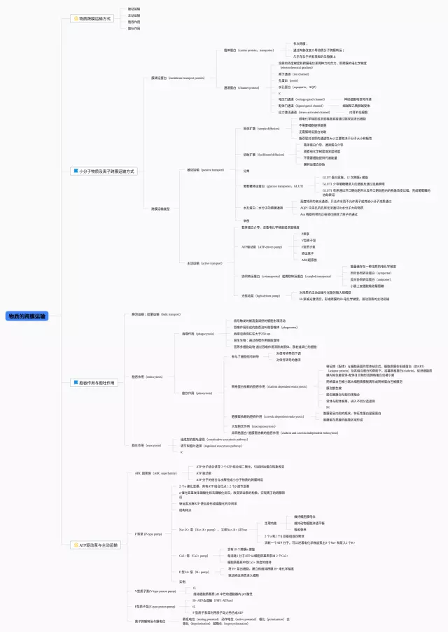 25张物质跨膜运输思维导图汇总,物质跨膜运输思维导图,内容涵盖单纯扩散(不需蛋白)、膜蛋白介导、膜泡转运(胞吞胞吐)等3个方面,25张附打印高清版,每张思维导图都非常清晰,每张图片均附打印高清版。