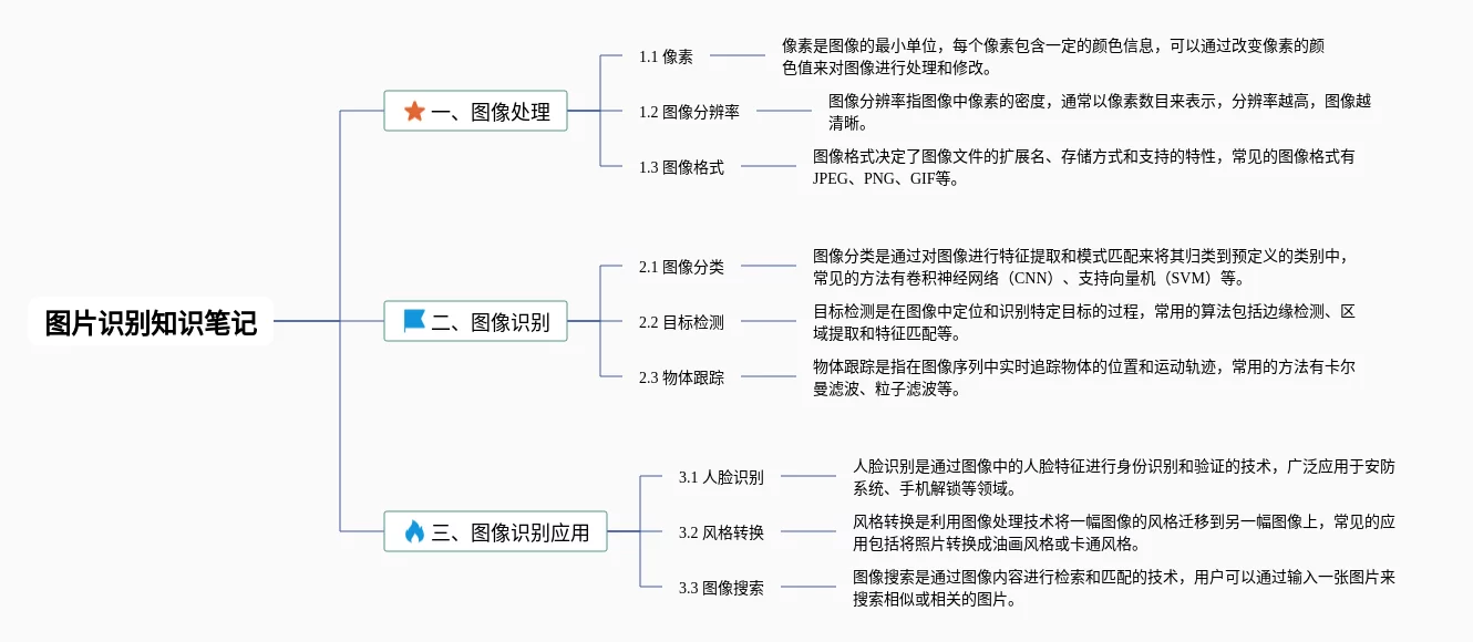 24张图片识别思维导图汇总,图片识别思维导图,内容涵盖图像处理、图像识别、图像识别应用等3个方面,24张高清晰可打印,每张思维导图都非常漂亮,每张图片均高清晰可打印。