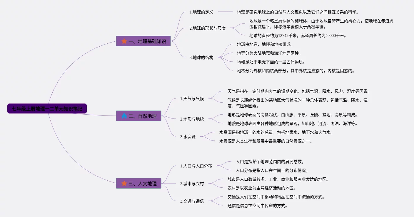 七年级上册地理第一二章思维导图(20张高清版)