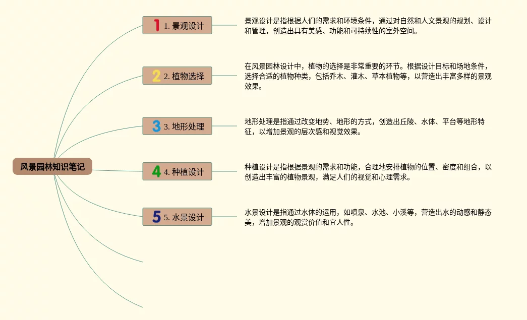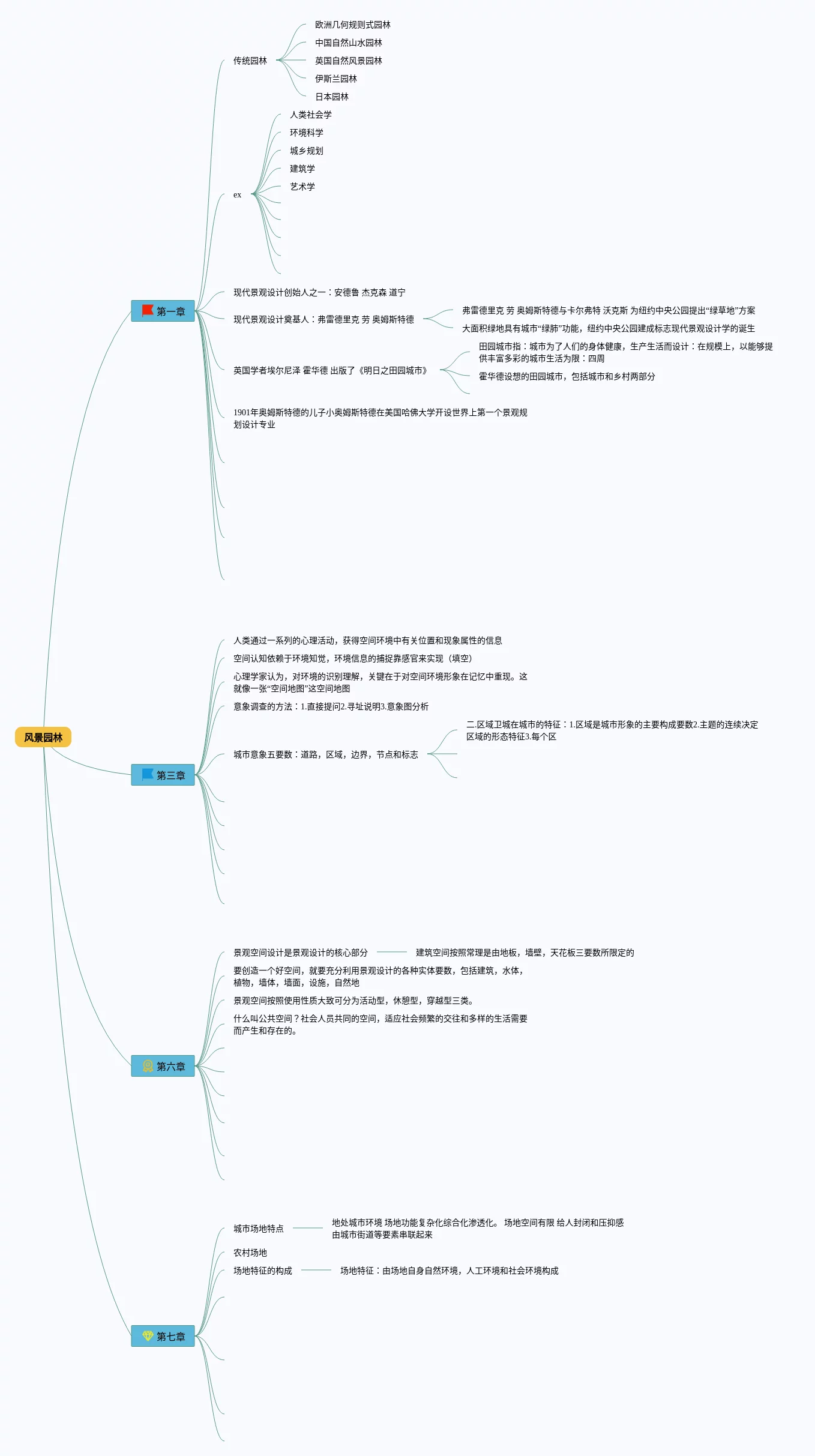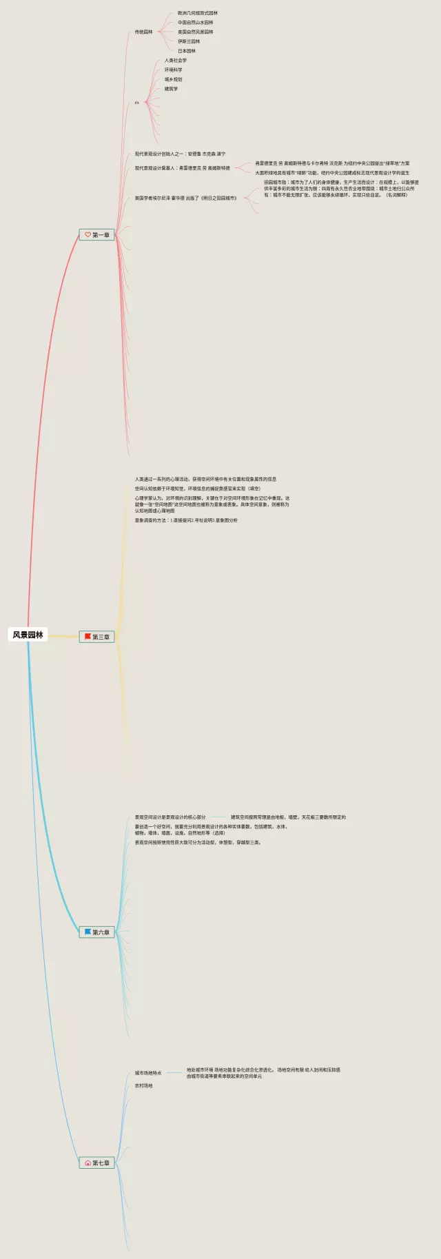 22张风景思维导图大全汇总,风景思维导图大全,内容涵盖1. 景观设计、2. 植物选择、3. 地形处理、4. 种植设计、5. 水景设计等7个部分,22张精选版,每张思维导图都非常简单,每张图片均精选版。
