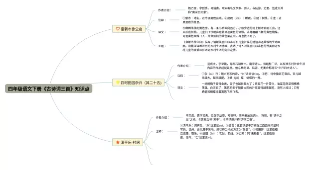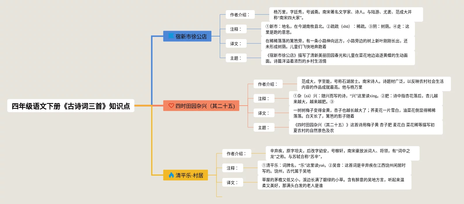 23张古诗词三首四年级下册思维导图合集,古诗词三首四年级下册思维导图,内容涵盖南宋、北宋、汉乐府、三国、北朝民歌等5个方面,23张精选版,每张思维导图都非常漂亮,每张图片均精选版。