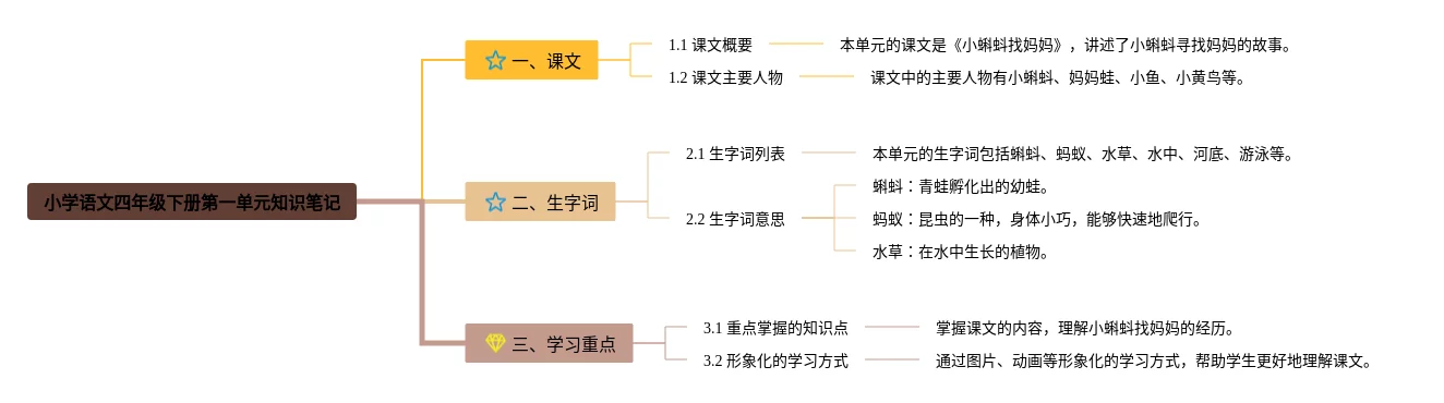小学四年级语文下册第一单元思维导图(23张可打印)