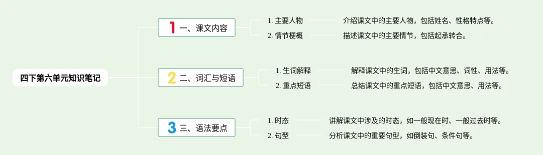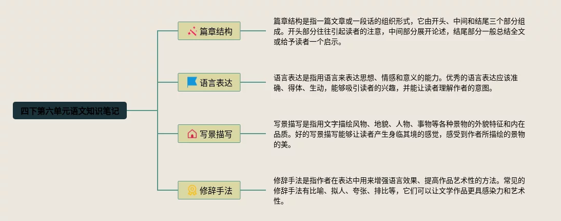 四下第六单元思维导图汇总,四下第六单元思维导图语文,内容涵盖课文、词语解释、短文改错、作文指导等4个部分,20张可下载,每张思维导图都非常漂亮,每张图片均可下载。