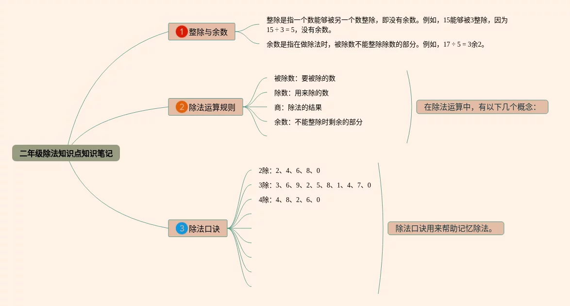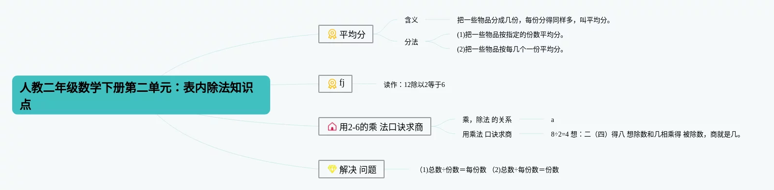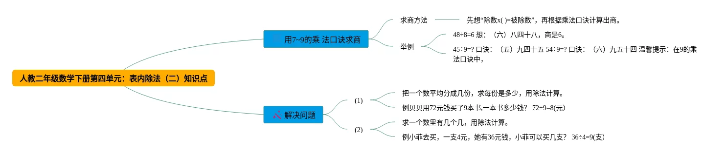 25张二年级除法知识点思维导图汇总,二年级除法知识点思维导图,内容涵盖转录、翻译、基因控制性状的途径、基因的选择性表达与细胞分化、表观遗传等7个要点,25张可打印,每张思维导图都非常简单,每张图片均可打印。