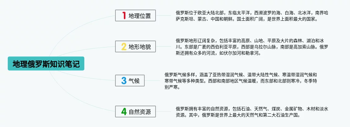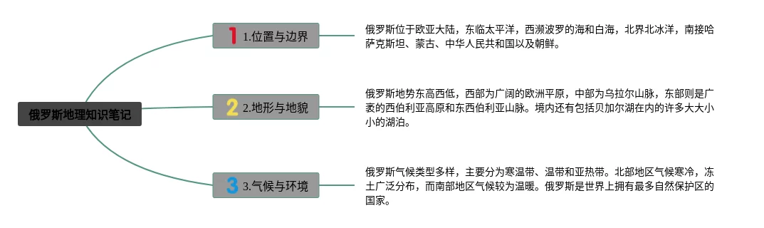 20张俄罗斯地理思维导图简单汇总,俄罗斯地理思维导图简单,内容涵盖1.位置与边界、2.地形与地貌、3.气候与环境等3个方面,20张精选版,每张思维导图都非常清晰,每张图片均精选版。