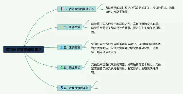 22张初中古诗的思维导图合集,初中古诗的思维导图,内容涵盖古诗鉴赏的基础知识、唐诗鉴赏、宋词鉴赏、元曲鉴赏、近现代诗歌鉴赏等5个要点,22张高清版,每张思维导图都非常漂亮,每张图片均高清版。