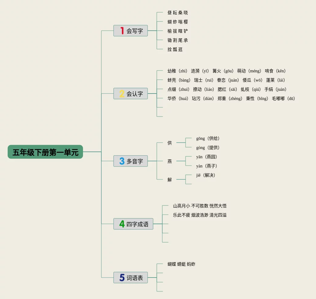 思维导图英语五年级下册第一单元(22张高清晰可打印)