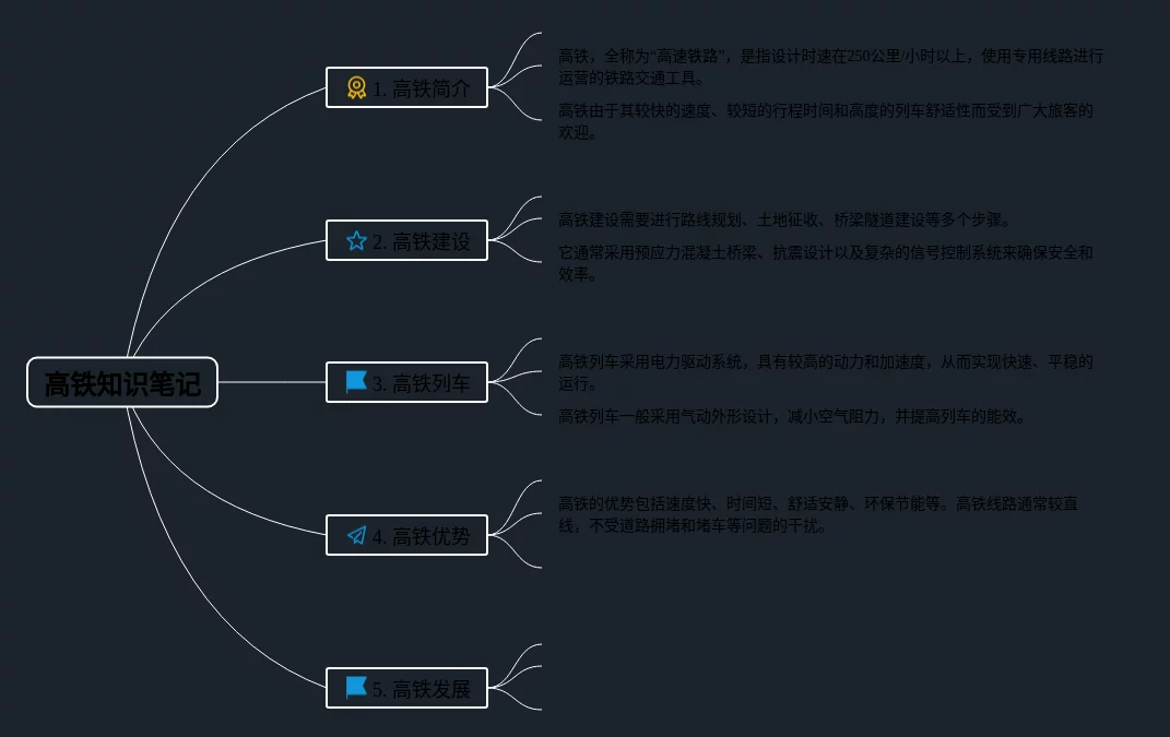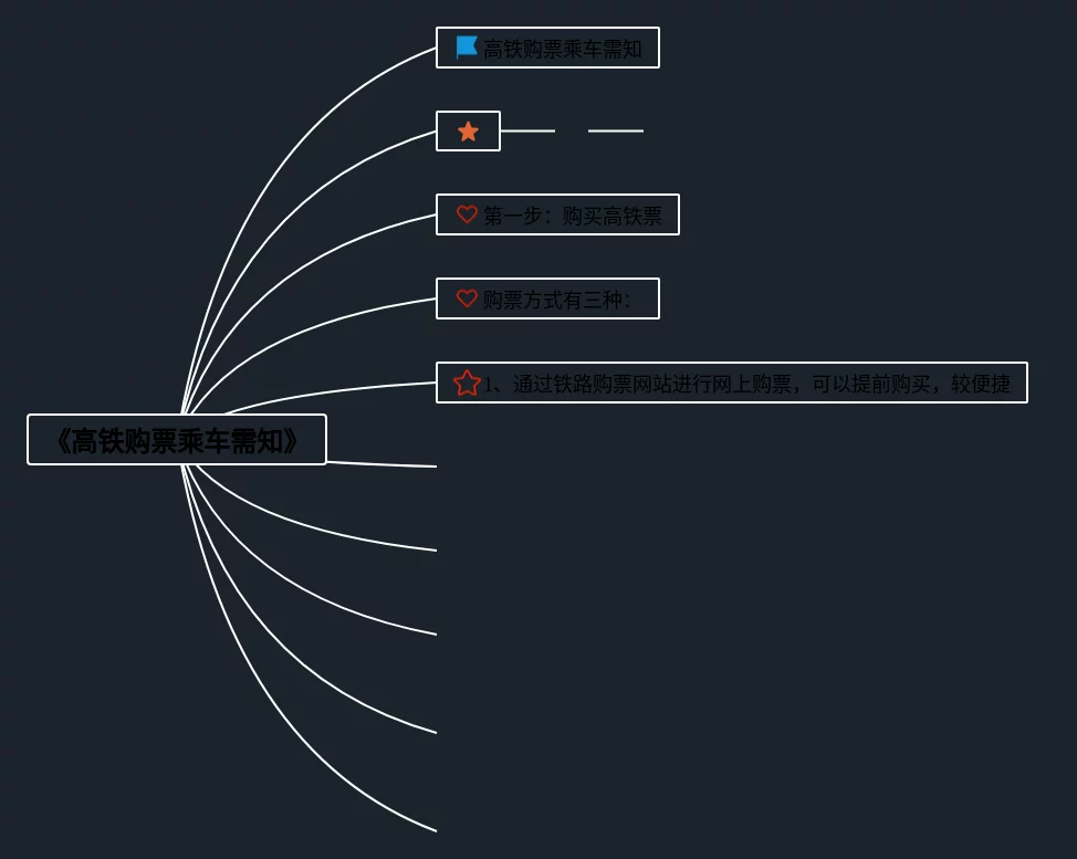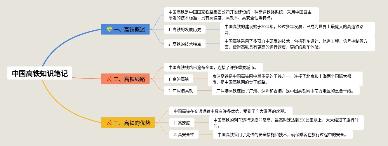 21张关于高铁的思维导图汇总,关于高铁的思维导图,内容涵盖高铁的定义、高铁的发展历程、高铁的优势和影响等3个要点,21张可下载,每张思维导图都非常简单,每张图片均可下载。