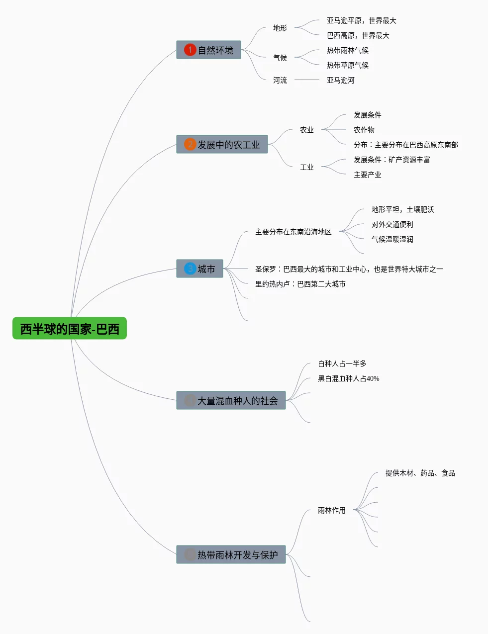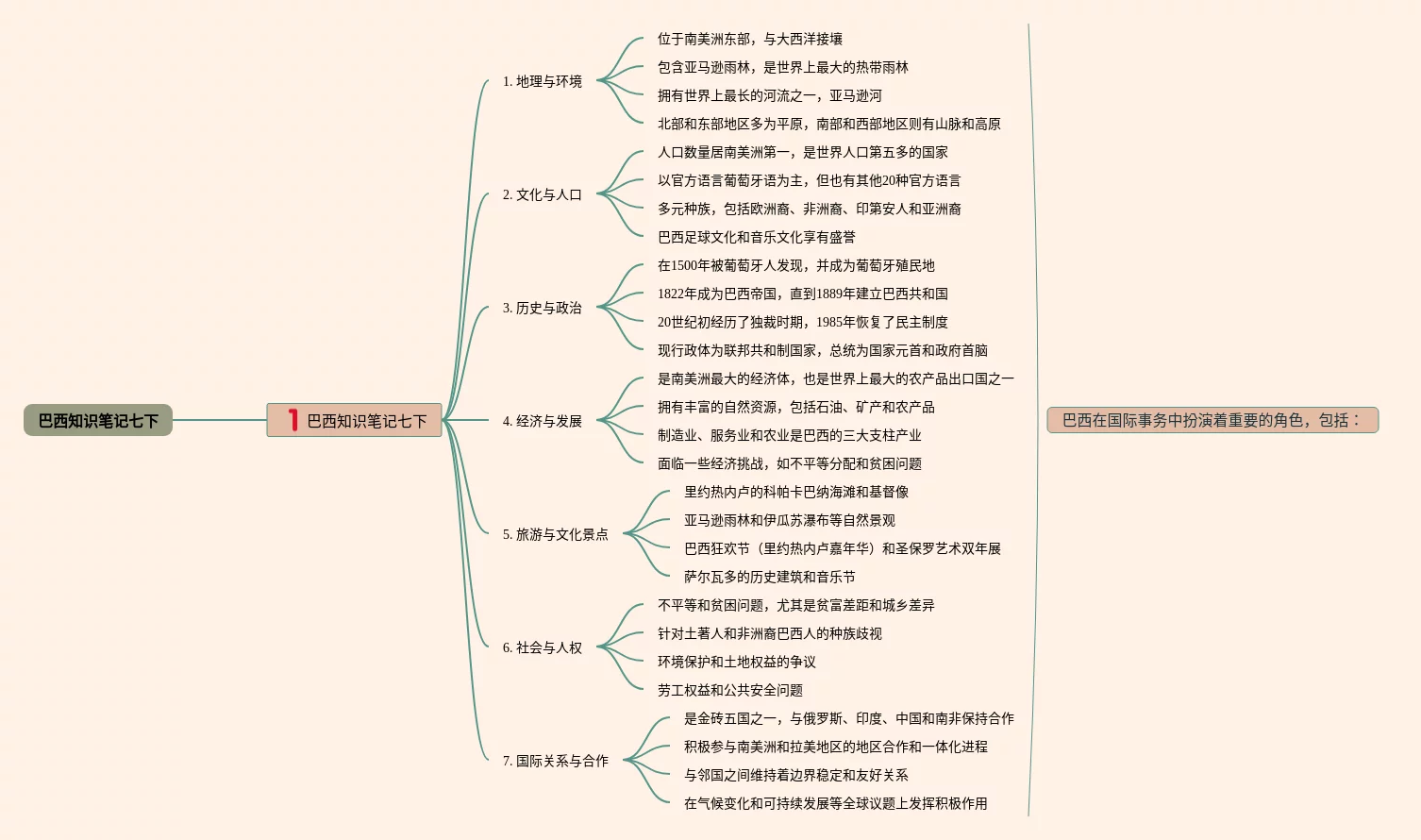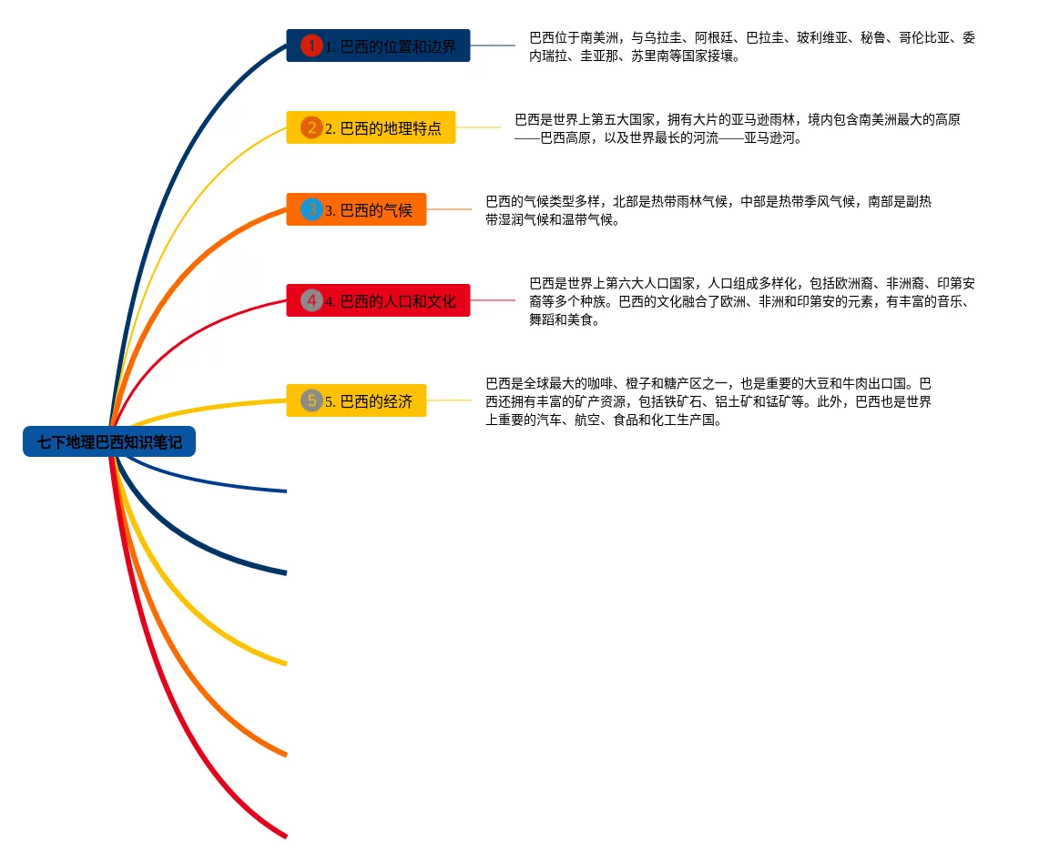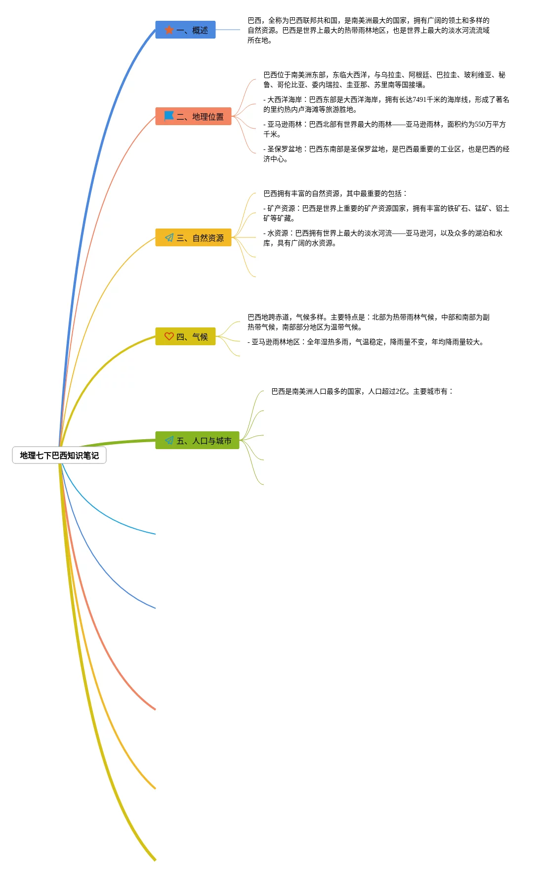 25张巴西思维导图七下地理合集,巴西思维导图七下地理,内容涵盖第一章巴西的地理位置和边界、第二章巴西的地貌、第三章巴西的气候、第四章巴西的自然资源、第五章巴西的人口和城市等7个方面,25张值得收藏,每张思维导图都非常简单,每张图片均值得收藏。